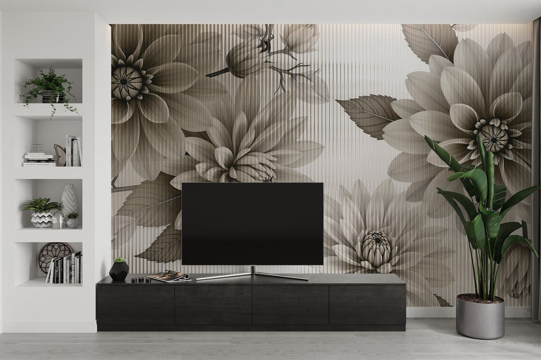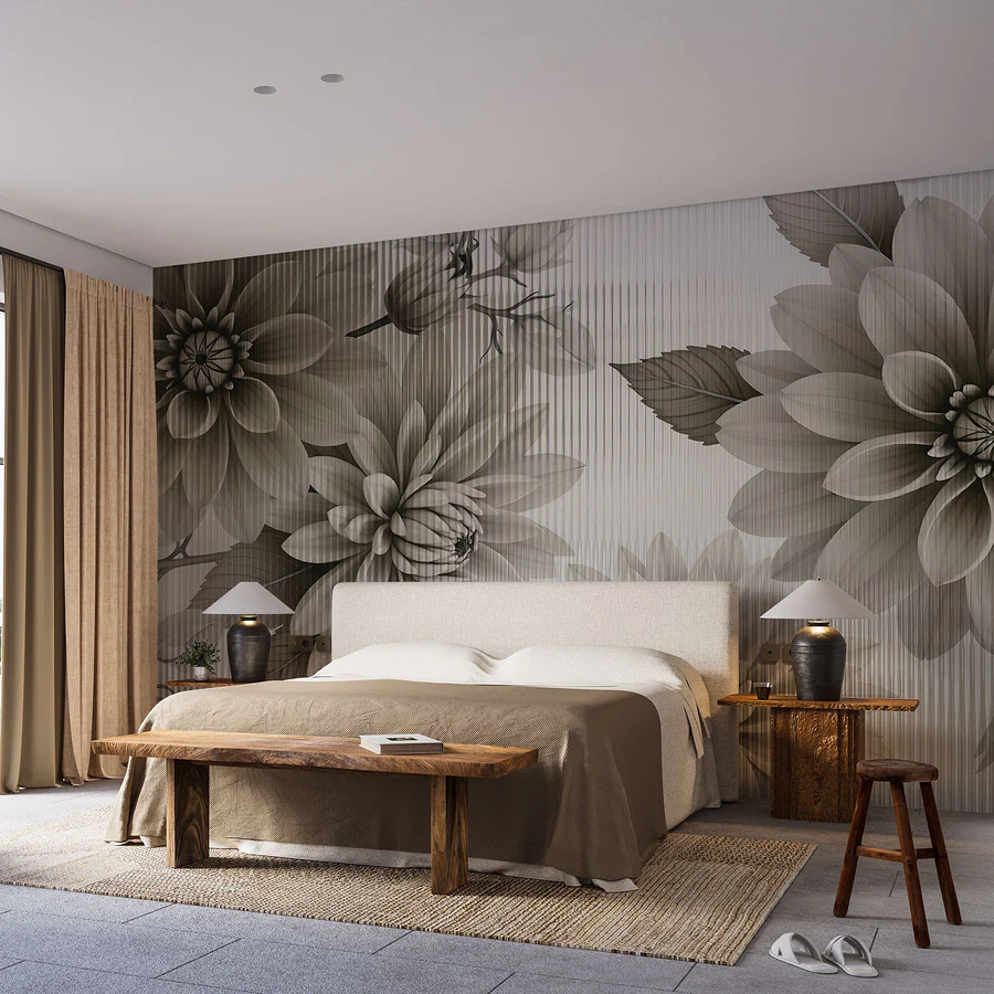 Verander elke ruimte in een serene tuin met deze elegante monochrome muurschildering met bloemenmotief. Stel je voor dat je een kamer binnenloopt die omringd is door deze prachtige bloemen – laat dat je hart niet een beetje sneller kloppen? De zachte, gedempte tinten dansen samen als een zacht briesje en creëren een rustige en uitnodigende sfeer. Deze muurschildering is perfect voor een gezellig leeshoekje of een dromerige slaapkamer en brengt een vleugje natuur binnenshuis zonder het gedoe van echte planten. Stel je voor dat je lekker met een boek gaat zitten, omringd door deze vredige sfeer. Het is alsof je je eigen geheime tuin in huis hebt, maar dan zonder vervelende pollen! Haal een beetje elegantie in huis en laat de bloemen voor zich spreken.