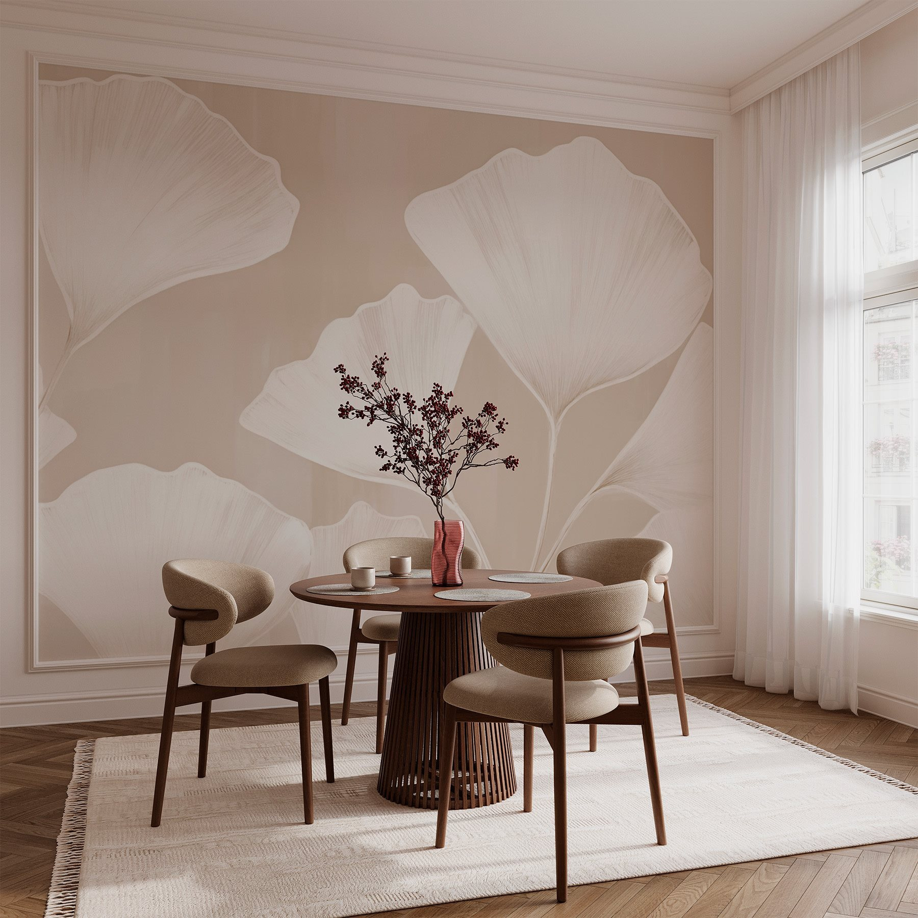 Transformeer je ruimte met de muurschildering “Delicate Leaves in Soft Tones”, waar de natuur en de rust elkaar ontmoeten. Stel je voor dat je een kamer binnenloopt die aanvoelt als een sereen vakantieoord in het bos. De zachte tinten en sierlijke bladmotieven ademen ontspanning en eenvoud. Perfect om een gezellig leeshoekje te creëren of om je woonkamer een frisse, luchtige uitstraling te geven. Vrienden kunnen binnenlopen, één blik werpen en zeggen: “Wauw, waar komt dat vandaan?”. Opeens zijn je muren het gesprek van de dag. Het is niet alleen decor; het is een frisse wind in huis. Perfect chique, moeiteloos rustgevend, het is het soort ontwerp dat uitnodigt tot complimenten en misschien ook een beetje afgunst.