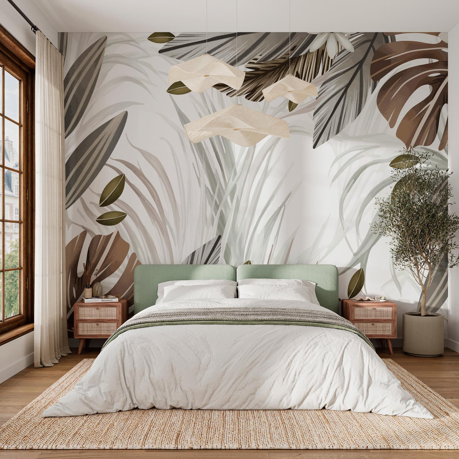 Tover elke kamer om in een sereen toevluchtsoord met “Schoonheid van de natuur in zachte tinten”. Deze muurschildering brengt weelderig gebladerte en gedempte tinten samen, waardoor de rust van de natuur je kamer binnenkomt. Stel je voor dat je wakker wordt met een zacht palet van bladgroen en zacht bruin, waardoor een rustgevende achtergrond ontstaat die ontspanning uitstraalt. Perfect voor een luchtige woonkamer of dat gezellige leeshoekje, het ontwerp vloeit moeiteloos over en geeft je het gevoel dat je in een weelderige tuin bent verscholen. Elke blik brengt je naar een vredige plek, waar het enige waar je aan denkt dat volgende kopje thee is. Het is alsof je het buitenleven naar binnen haalt, zonder de muggen natuurlijk. Perfect om een statement te maken zonder te schreeuwen.