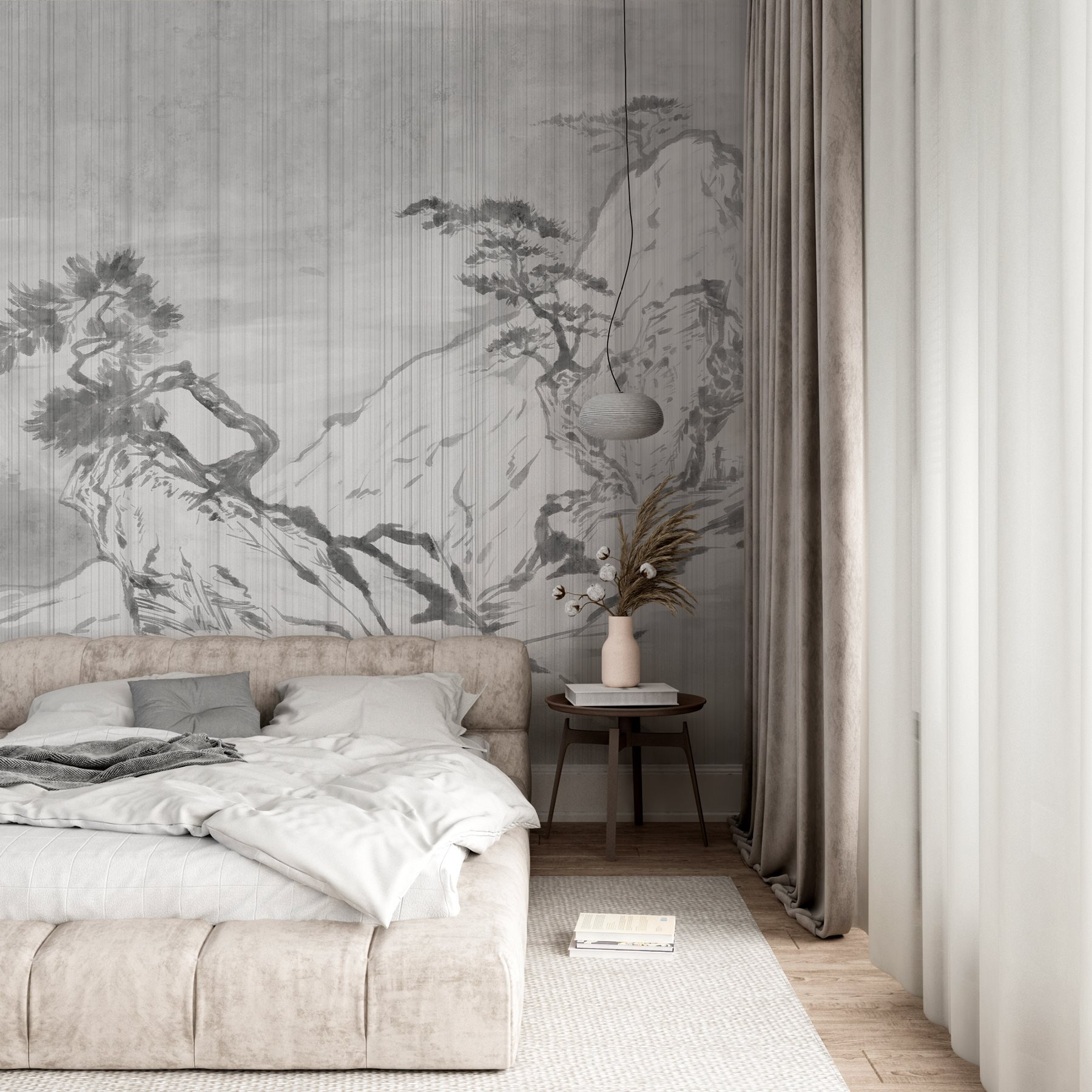 Duik in een serene ontsnapping met deze prachtige muurschildering met een sierlijke boom op een ruige rots. Stel je voor dat je vanuit je woonkamer een rustig landschap binnenstapt. Het is alsof je de natuur naar binnen haalt zonder de insecten. Het zachte penseelwerk vangt de essentie van een vredige bergscène en biedt een visuele zucht van verlichting telkens als er iemand voorbij wandelt. Perfect voor mensen die een beetje rust in hun chaos op prijs stellen! Of het nu gaat om een praatje met vrienden of gezellig lezen, deze muurschildering verandert de ruimte in een klein toevluchtsoord. Het is kunst die je gewoon een goed gevoel geeft – zeker een gespreksstarter!