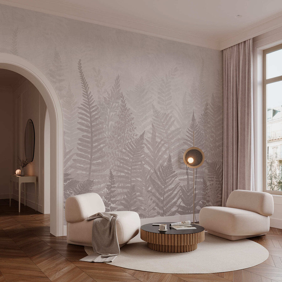 Verander elke kamer in een serene ontsnapping met deze betoverende muurschildering met varenbladeren gehuld in een dromerige mist. Het is alsof je een stukje natuur in huis haalt zonder dat je af en toe last hebt van spinnen of vervelende insecten. Stel je voor dat je wakker wordt met zacht groen dat zich subtiel mengt met zacht grijs – het is rustgevend, verfrissend en gewoon een beetje magisch. Dit ontwerp nodigt uit tot een vredige sfeer, perfect voor gezellige hoekjes of levendige woonruimtes. Het is alsof je tegen de buitenwereld fluistert dat het goed is om even rustig aan te doen en adem te halen. Natuurliefhebbers zullen zich meteen thuis voelen, gehuld in de essentie van het buitenleven.