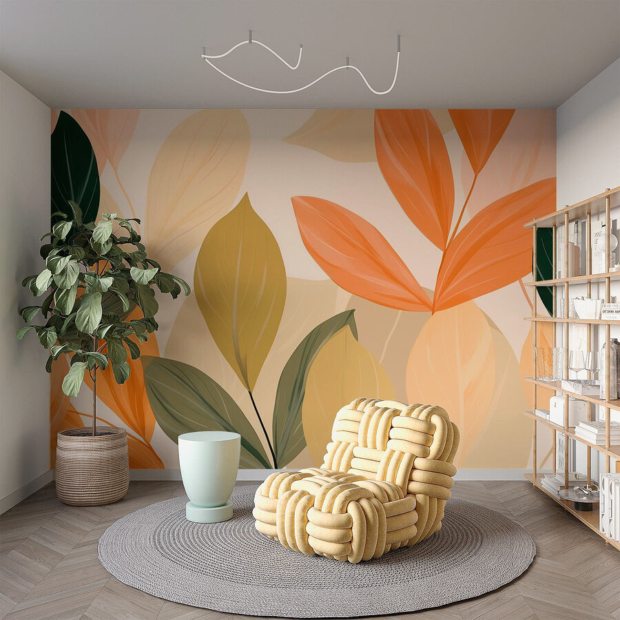Transformeer elke ruimte met “Nature’s Palette of Autumn Hues”. Deze muurschildering brengt een warme mix van herfstbladeren samen, dansend in zachte oranje, gele en groene tinten. Stel je voor dat je in een knusse hut stapt, warme cider drinkt en naar buiten kijkt naar een bos vol herfstkleuren – dat is de sfeer die deze muurschildering uitstraalt. Perfect voor een woonkamer of een rustig hoekje, het is als een knuffel voor je muren. Of het nu herinneringen oproept aan levendige bladstapels of luie herfstmiddagen, het geeft een troostende sfeer die gewoon goed voelt. Voeg een vleugje natuurschoon toe en zie de kamer stralen.
