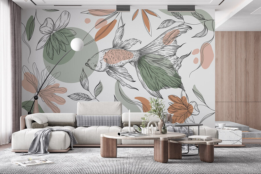 Tover elke kamer om in een serene oase met deze prachtige muurschildering met speelse vissen en weelderige planten tegen een heldere achtergrond. Het voelt als een dag doorbrengen aan een rustige tuinvijver, waar elke blik je meeneemt in een wereld van rust. Stel je voor dat je aan je ochtendkoffie nipt, omringd door deze vriendelijke wezens en levendige flora. Perfect voor een gezellig hoekje of een levendige woonkamer, deze muurschildering geeft een verfrissende draai aan je ruimte. Het is niet alleen decor; het is een gespreksstarter, een stukje natuur dat uitnodigend en vrolijk aanvoelt, net als een vriendelijk praatje met een buurman over de schutting. En wie zou zich niet elke dag omringd willen voelen door zulke schoonheid? Duik in de charme en zie je muren tot leven komen!