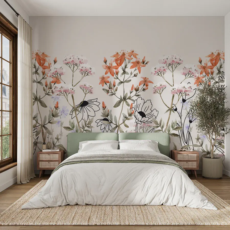 Stel je eens voor dat je een kamer binnenstapt die aanvoelt als een vredige tuin, zelfs op de drukste dagen. Deze muurschildering, “Delicate blooms on a serene backdrop”, brengt een boeket levendige bloemen tot leven die bijna lijken te wiegen in de wind. De zachte kleuren en vloeiende lijnen geven je het gevoel dat je omringd bent door het beste van de natuur. Perfect voor een gezellige woonkamer of een rustgevende slaapkamer, het fluistert ontspanning als een lekker kopje thee na een lange dag. Stel je voor dat je lekker wegkruipt met een boek, dat de bloemen je opbeuren en misschien zelfs een vlinder of twee uitnodigen… of in ieder geval de nieuwsgierige blik van je kat! Wie wist dat een muur zo uitnodigend kon zijn?