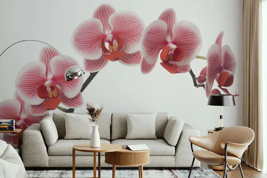 Stel je voor dat je een kamer binnenloopt die aanvoelt als een zacht tuinbriesje. Deze muurschildering met delicate orchideeën in rustgevende tinten brengt een vleugje natuur binnenshuis. De zachte kleuren mengen prachtig en creëren een serene sfeer die uitnodigt tot ontspanning. Stel je voor dat je thee drinkt op een gezellige middag, omringd door deze sierlijke bloemen – rustgevend, toch? Elke blik op de muurschildering voelt als een kleine ontsnapping, alsof je in een droom stapt. Deze muurschildering is perfect voor elke ruimte die een beetje charme nodig heeft en voegt karakter toe zonder om aandacht te schreeuwen. Het is alsof je een bloemenkameraad hebt die altijd in bloei staat!