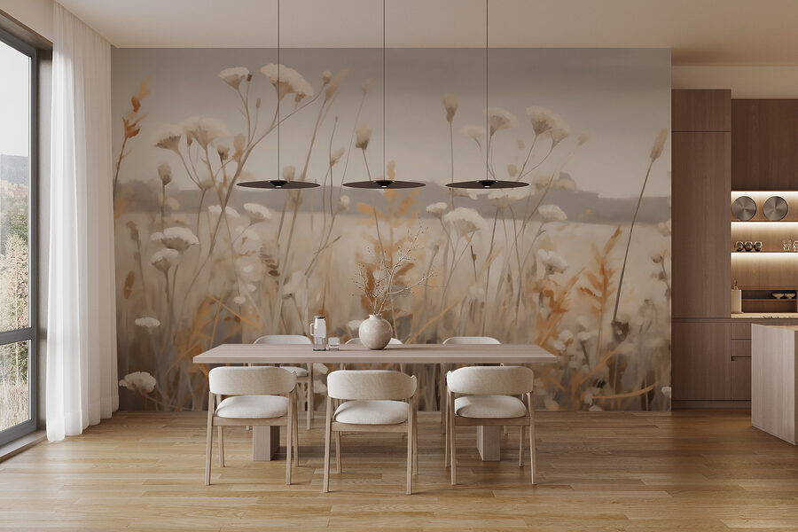 Verander elke kamer in een gezellig toevluchtsoord met deze betoverende muurschildering, “Veld van bloemen en gras”. Stel je voor dat je wakker wordt in een sereen veld waar wilde bloemen zachtjes wuiven in de wind. De zachte tinten nodigen uit tot een vleugje natuur binnenshuis en bieden een rustgevende achtergrond voor het dagelijks leven. Deze muurschildering is perfect voor een woonkamer of een rustige studeerkamer en brengt een gevoel van vrede en warmte; het is alsof je een mini-uitstapje aan je muur hebt hangen. Stel je voor dat je geniet van een kopje thee of een goed boek omringd door dit prachtige landschap – over instant ontspanning gesproken!