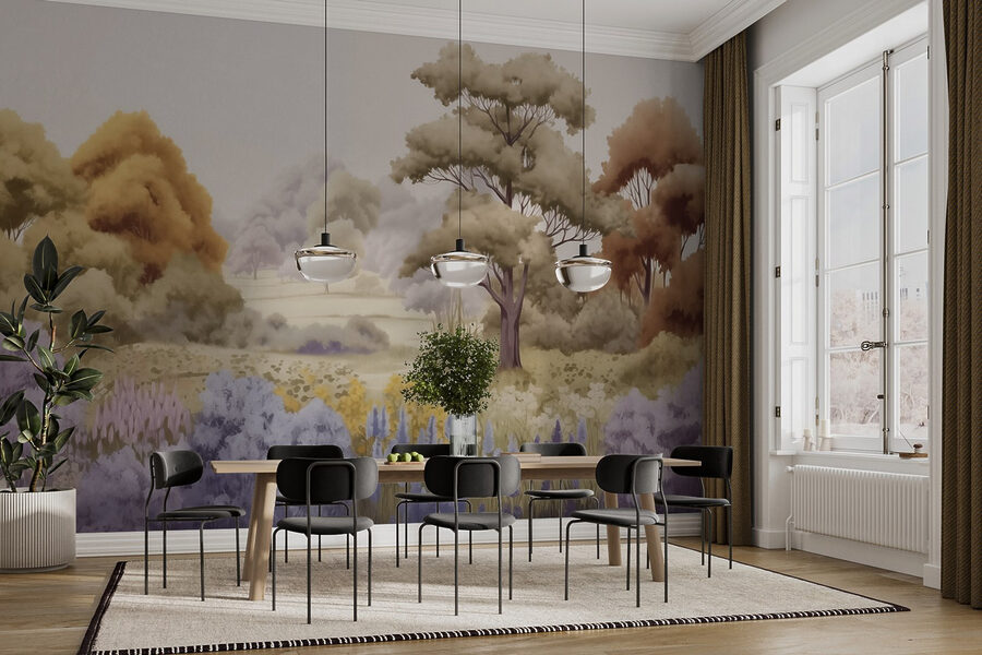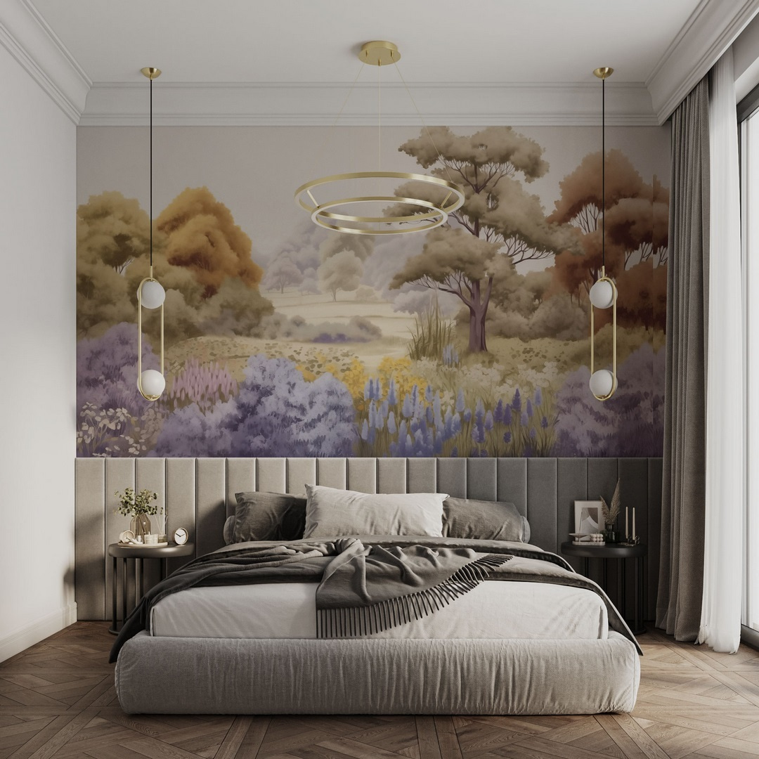 Transformeer je ruimte met deze betoverende muurschildering met een dromerig landschap vol bomen en bloeiende bloemen. Stel je voor dat je in een serene tuin stapt telkens als je er een glimp van opvangt. De zachte kleuren roepen een zachte kalmte op, perfect om te ontspannen na een lange dag. Stel je iemand voor die thee drinkt, met de muurschildering op de achtergrond, wat de gezellige sfeer direct verbetert. Het is alsof je een stukje natuur in huis haalt, zonder de vervelende bijen! Of het nu in een slaapkamer, woonkamer of zelfs een creatief hoekje is, deze muurschildering wekt moeiteloos vreugde op en nodigt uit tot rust, waardoor elk moment net iets specialer aanvoelt. Wie wil zich niet koesteren in zulke schoonheid?