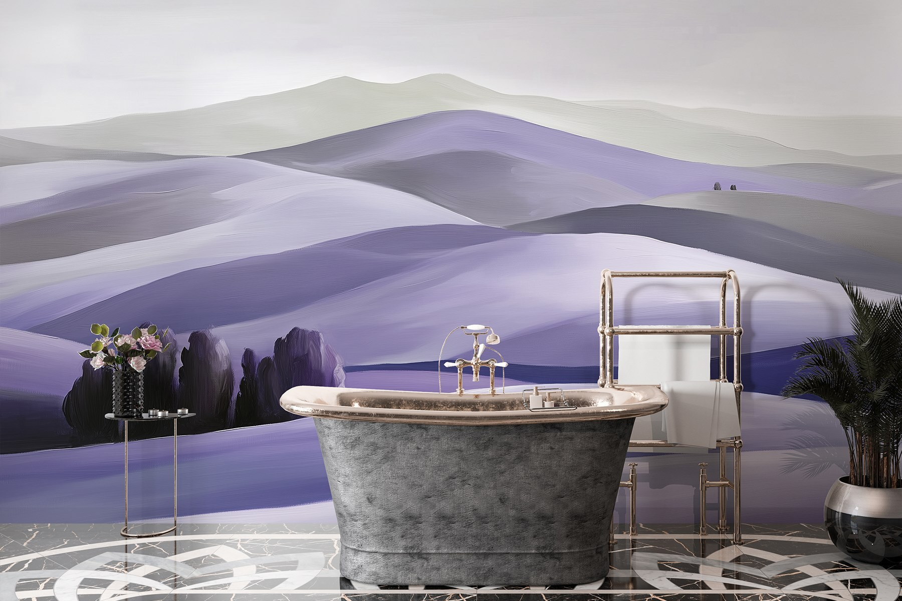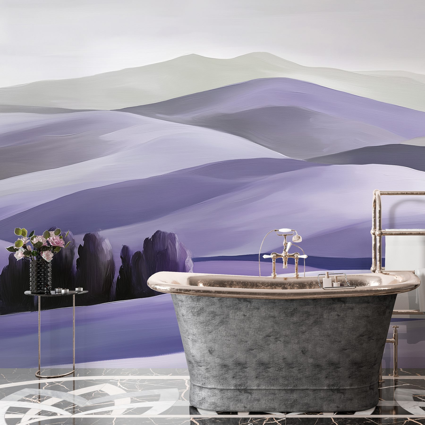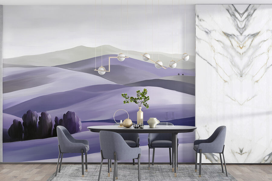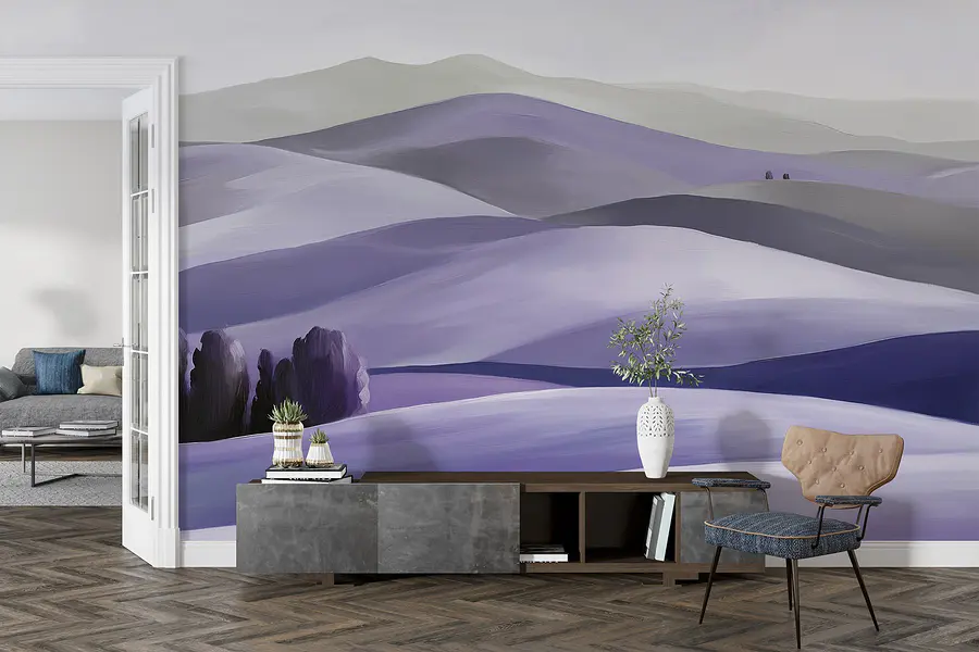 Transformeer je ruimte met deze prachtige muurschildering met serene heuvels bezaaid met bomen. Stel je voor dat je een kamer binnenstapt die aanvoelt als een zachte knuffel van de natuur. De zachte tinten gaan naadloos in elkaar over en nodigen je uit om wat dieper adem te halen en tot rust te komen. Het is alsof je een gezellig stukje buiten bij je thuis hebt – perfect voor een woonkamer of een rustgevende slaapkamer. Vrienden raken misschien wel betoverd door de vredige charme en wie weet roept het dagdromen op over een wandeling door de heuvels. De perfecte achtergrond voor luie middagen of een gezellige boekenclub!
