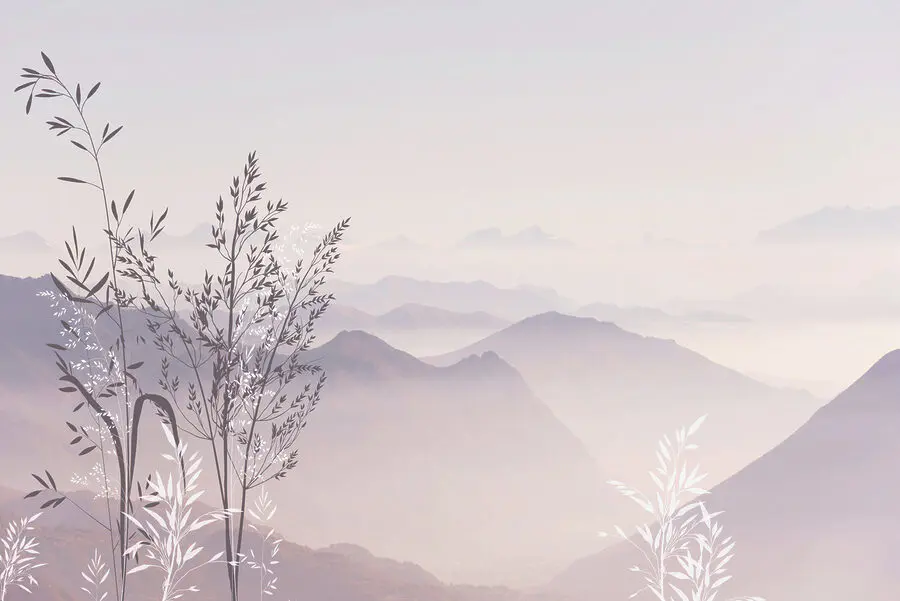Zie het voor je in je woon- of slaapkamer: je voelt je knus met een kopje thee en je gedachten dwalen door dat vredige, gelaagde landschap. Plus, het delicate gebladerte op de voorgrond voegt een leuk kunstzinnig tintje toe! Het is alsof je een raam hebt naar een stille, ongestoorde wereld… een perfecte achtergrond voor je mindful momenten of gewoon om tot rust te komen na een lange dag.
