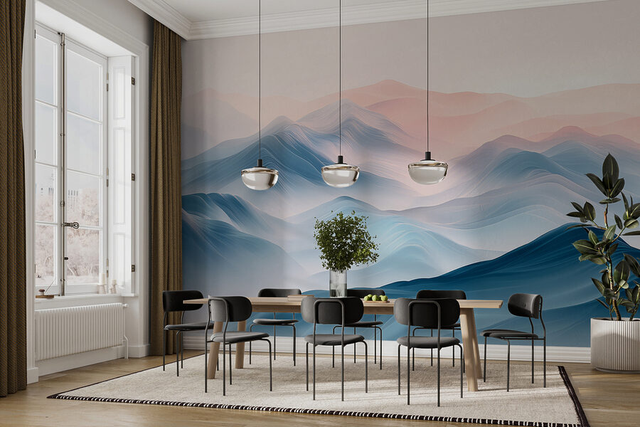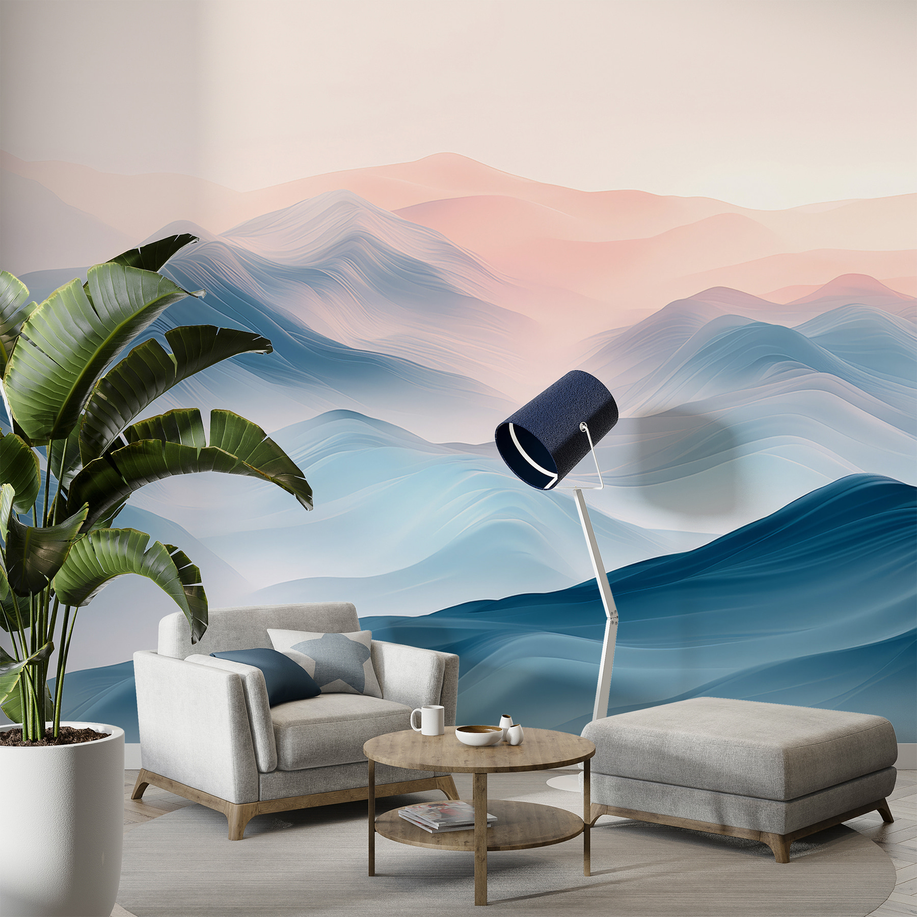 De zachte, vloeiende lijnen en zachte kleurverlopen van deze muurschildering geven elke ruimte een ruim en luchtig gevoel. Het is niet zomaar een muurbekleding, maar een portaal naar rust, een gespreksstarter en een canvas dat rust brengt in je dag. Iedereen die je huis binnenloopt zal er ook een willen – geloof me!