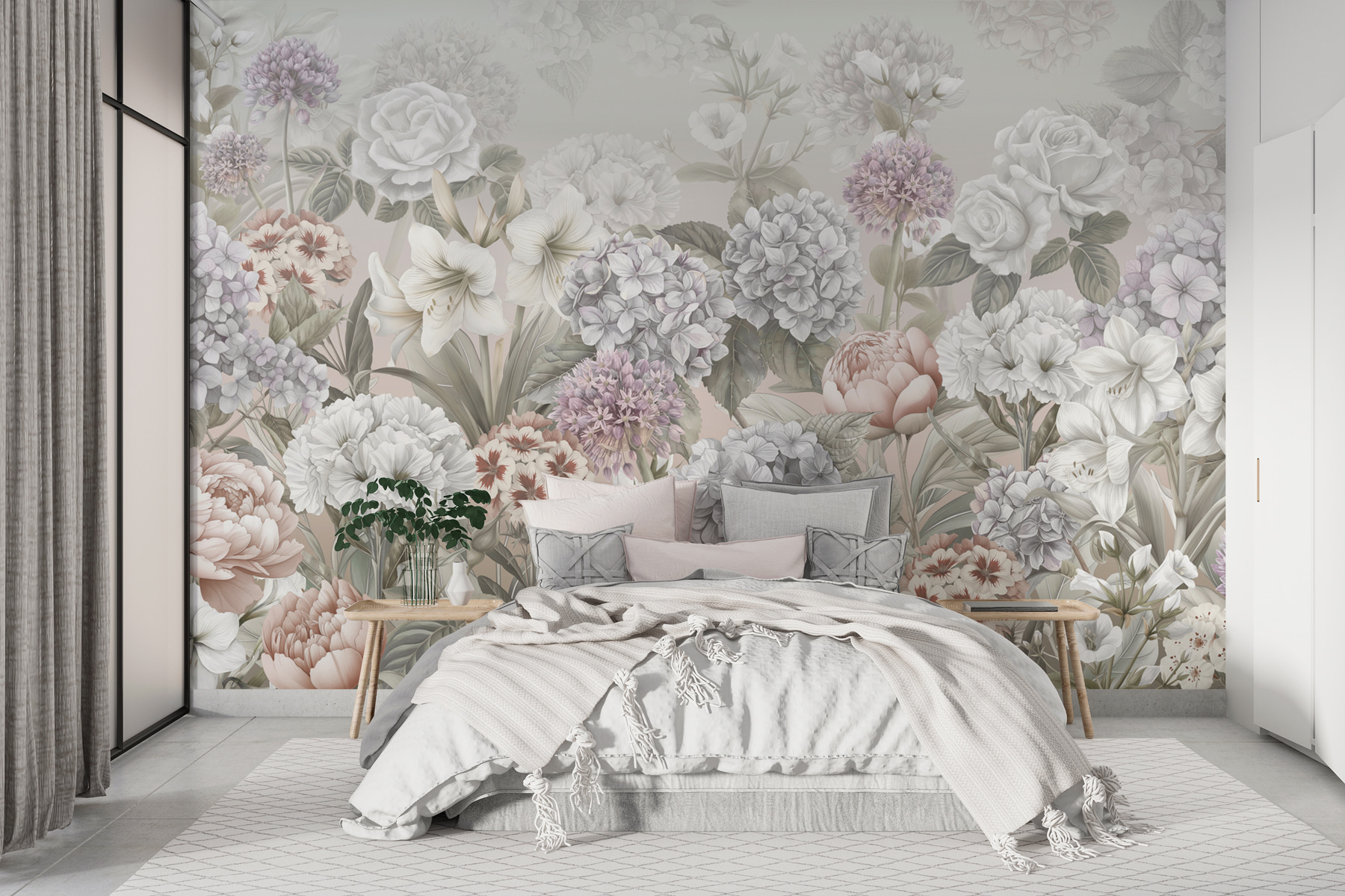 Deze muurschildering, getiteld “Muurschilderingen w08140”, is alsof je een dromerige tuin in je huis binnenstapt. Stel je voor dat je je kamer binnenloopt en begroet wordt door een weelderige reeks pioenrozen, rozen en hortensia’s in zachte, rustgevende tinten. Het is net een boeket dat nooit verwelkt! Door de ingewikkelde details en delicate kleuren voelt het bijna aan als een vintage ansichtkaart. Dit is niet zomaar een decorstuk; het is stemmingsverruimend, verfrissend en o zo mooi. Perfect om een vleugje natuur in huis te halen, zonder de pollen en het water. Marie van verderop in de straat? Zij zweert dat het de hele sfeer in haar kamer heeft veranderd. Kruip lekker onderuit met een goed boek en verdwaal in dit bloemenparadijs!