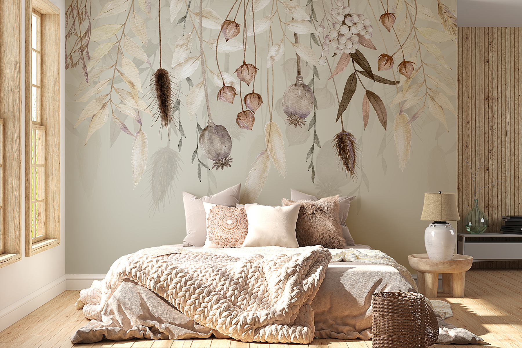 Stel je voor: je wordt wakker, rekt je uit en daar is hij dan, deze dromerige muurschildering genaamd “Muurschilderingen w08230” uit de Populaire Muurschilderingen en Muurschilderingen Natuur collecties. Het is net alsof je een stukje serene natuur in je woonkamer of slaapkamer hebt. Die delicate, gedempte tinten van aardebruin en zacht groen stralen gewoon rust uit.