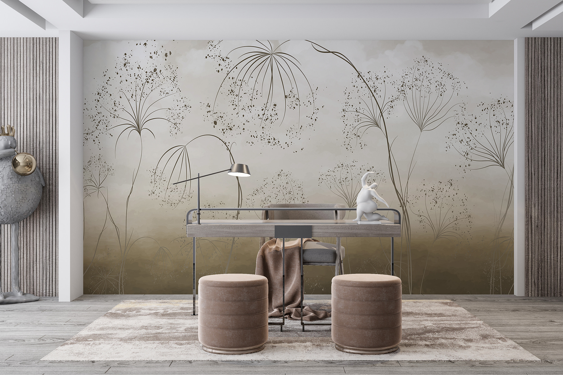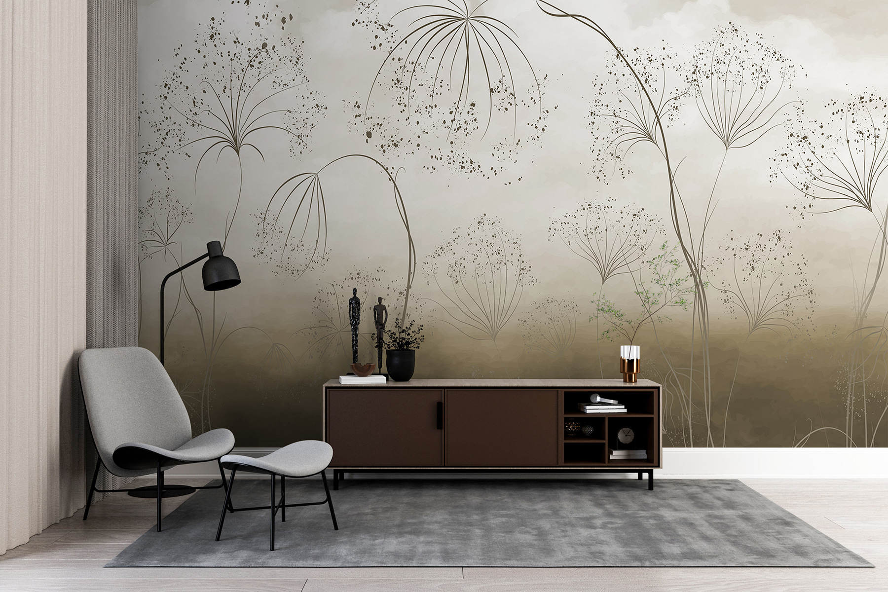 Transformeer elke kamer met deze grillige muurschildering die de delicate charme van paardenbloemen vastlegt die dansen in de wind. Deze zachte, vloeiende penseelstreken roepen een dromerig landschap op en nodigen de natuur uit om je huis binnen te komen. Stel je een rustige ochtend voor, koffie in de hand, terwijl de zachte schoonheid van deze muurschildering de muren opfleurt. Het ene moment denk je aan een zonnige weide, het volgende moment ben je in gedachten verzonken en droom je van verre oorden. Geweldig voor een gezellige woonkamer of een serene slaapkamer – het is alsof je een stukje natuur hebt dat nooit verwelkt! Kijk alleen uit voor die denkbeeldige paardenbloemzaadjes die voorbij drijven.