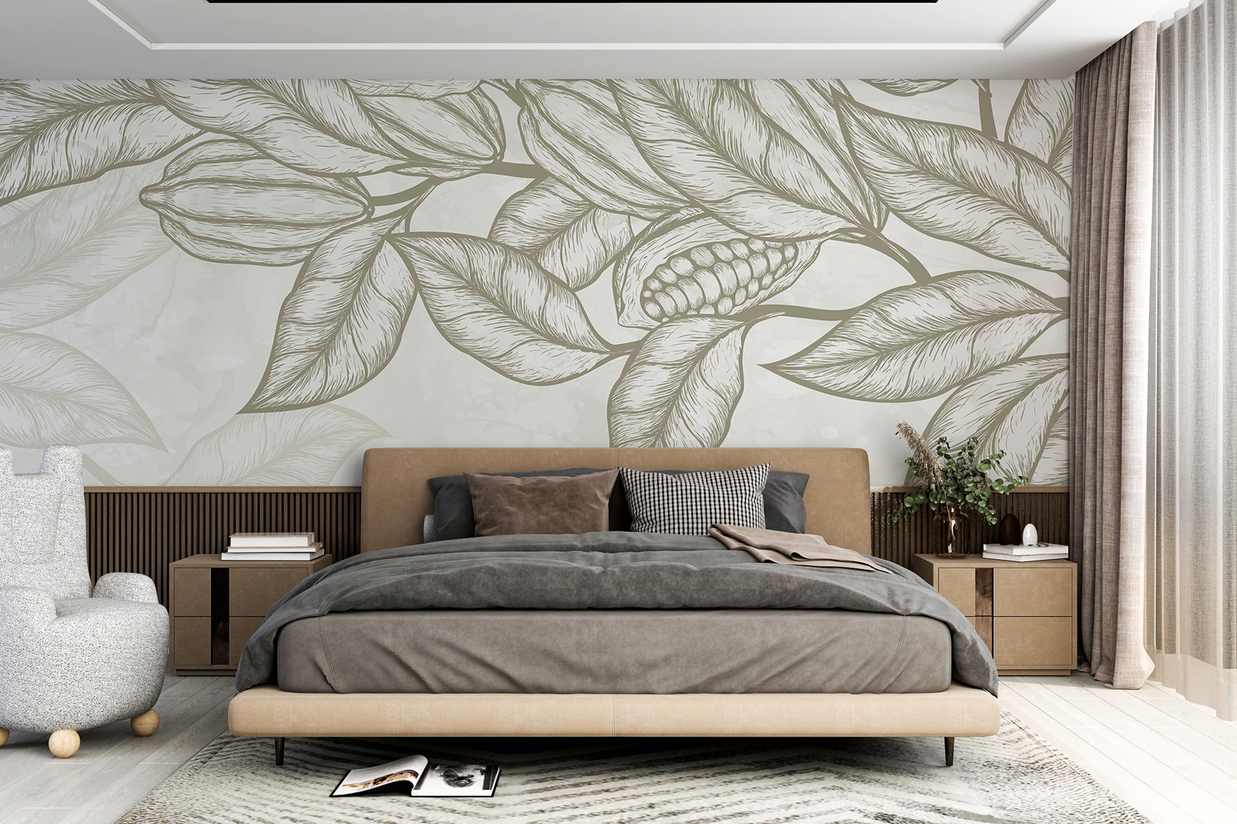 Stel je voor: je loopt je woonkamer binnen en BAM! Je wordt begroet door de weelderige bladeren en bonen van de “Fotobehang Plant”. Het is net je eigen tropische ontsnapping. Echt, wie heeft er vakantie nodig als je muur een mini-jungle is? Het ontwerp is zo levendig dat je half verwacht dat de bladeren beginnen te ritselen of de bonen openspringen. Het is net alsof je een stukje serene natuur op je muur hebt, zonder de insecten en de vochtigheid. Met deze muurschildering haal je een beetje van het buitenleven naar binnen, terwijl het toch stijlvol en o-zo-gezellig blijft.