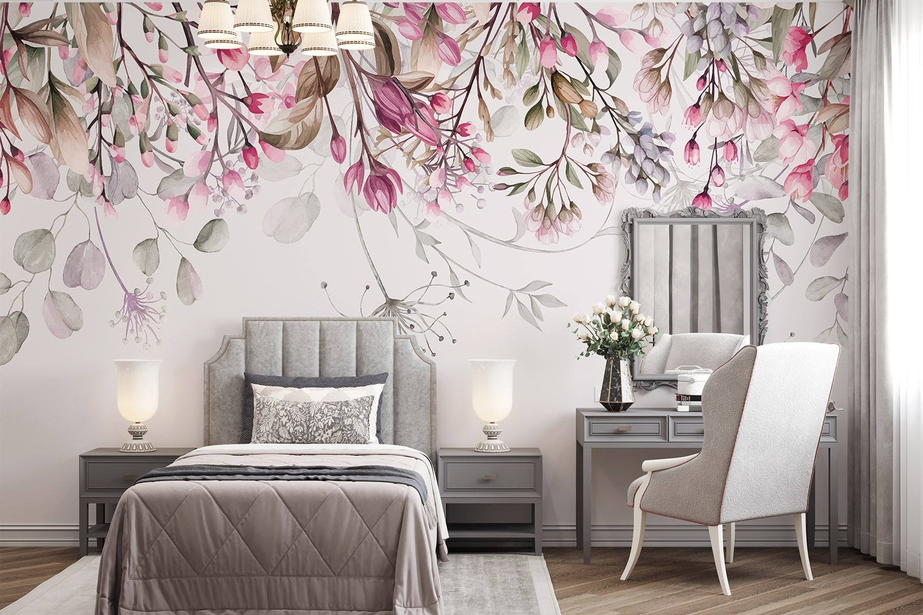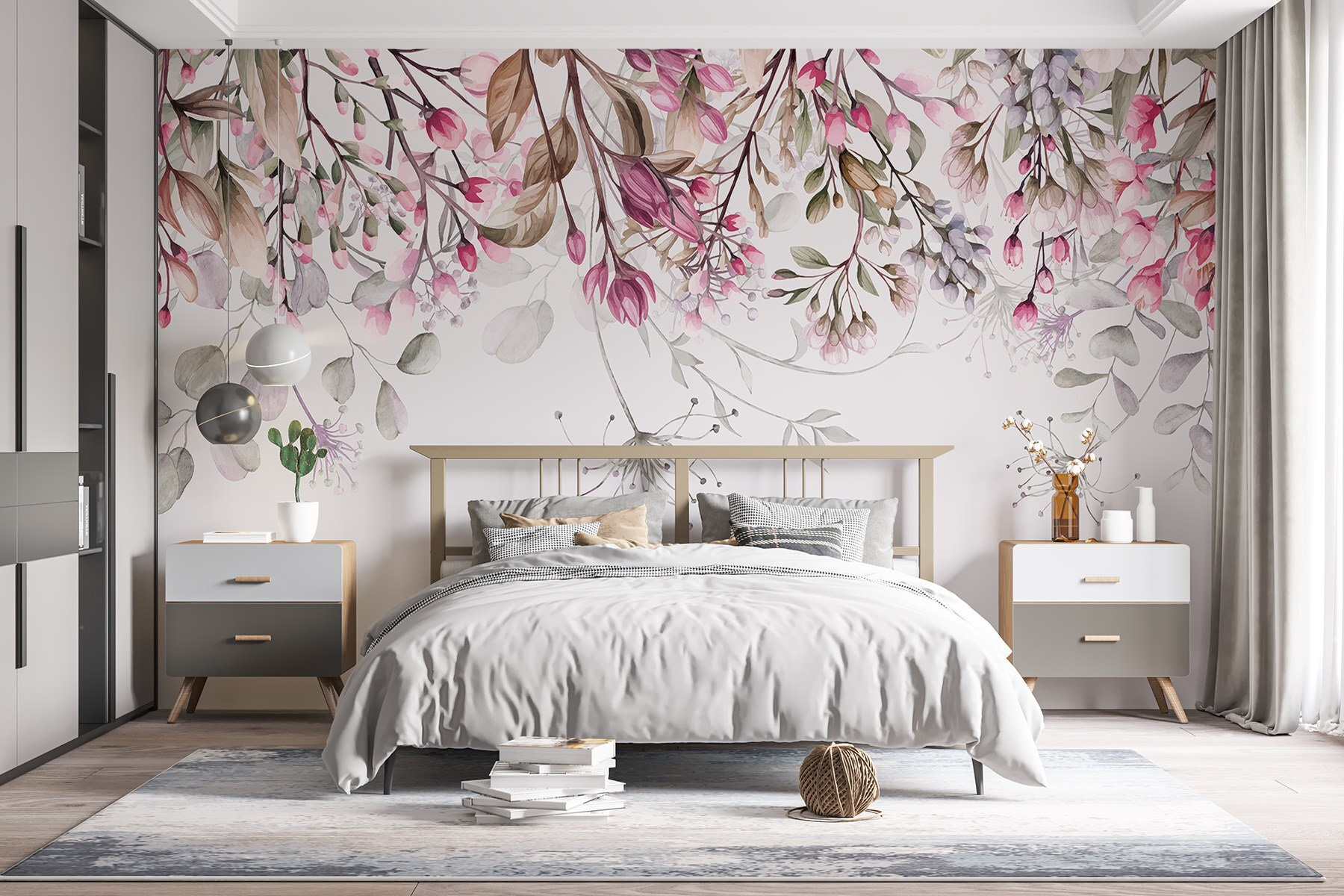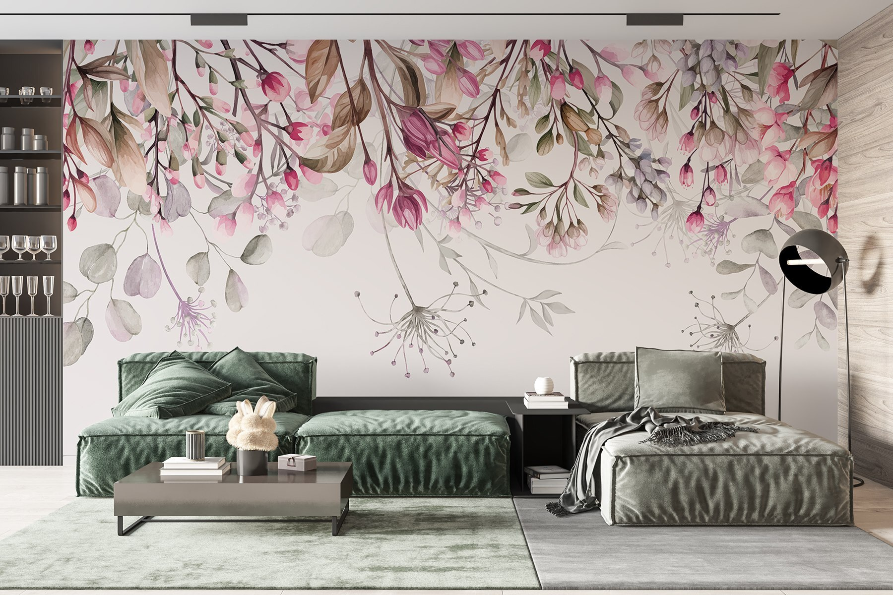 Transformeer je ruimte met de verrukkelijke “Whimsical Dance of Pastel Florals”. Stel je voor dat je een zonovergoten tuin binnenstapt, omringd door delicate bloemen die wiegen in een zacht briesje. Elk bloemblaadje en blad lijkt een verhaal te vertellen en nodigt warmte en vreugde uit in elke kamer. Het is alsof je je muren een knusse knuffel geeft die fluistert: “Hé, ontspan je.” Deze muurschildering is perfect voor een heldere, vrolijke sfeer en vervaagt sierlijk de grens tussen binnen en buiten. Of het nu een levendige woonkamer is of een serene slaapkamer, deze prachtige print zal zeker elke dag een glimlach op je gezicht toveren.