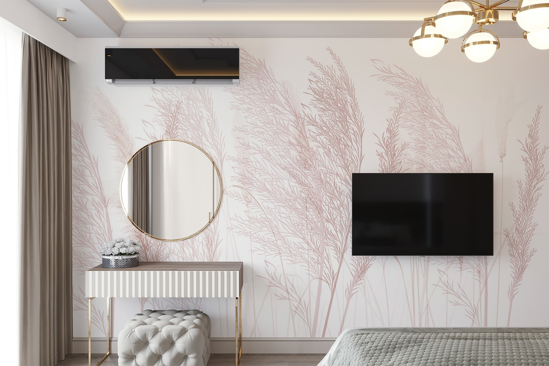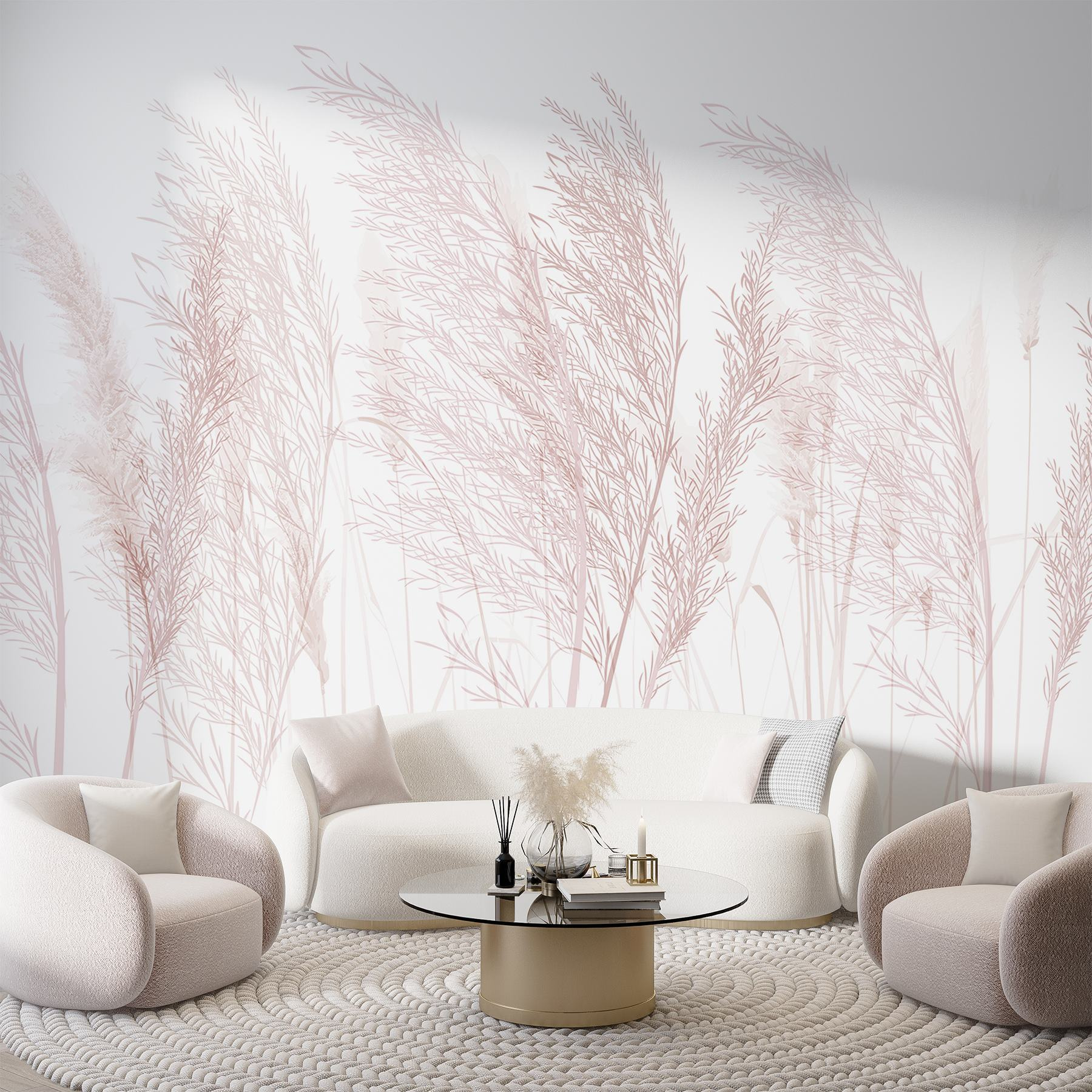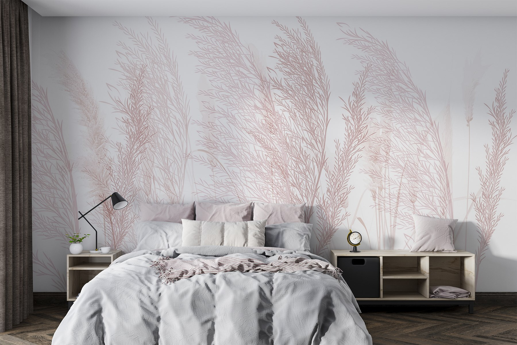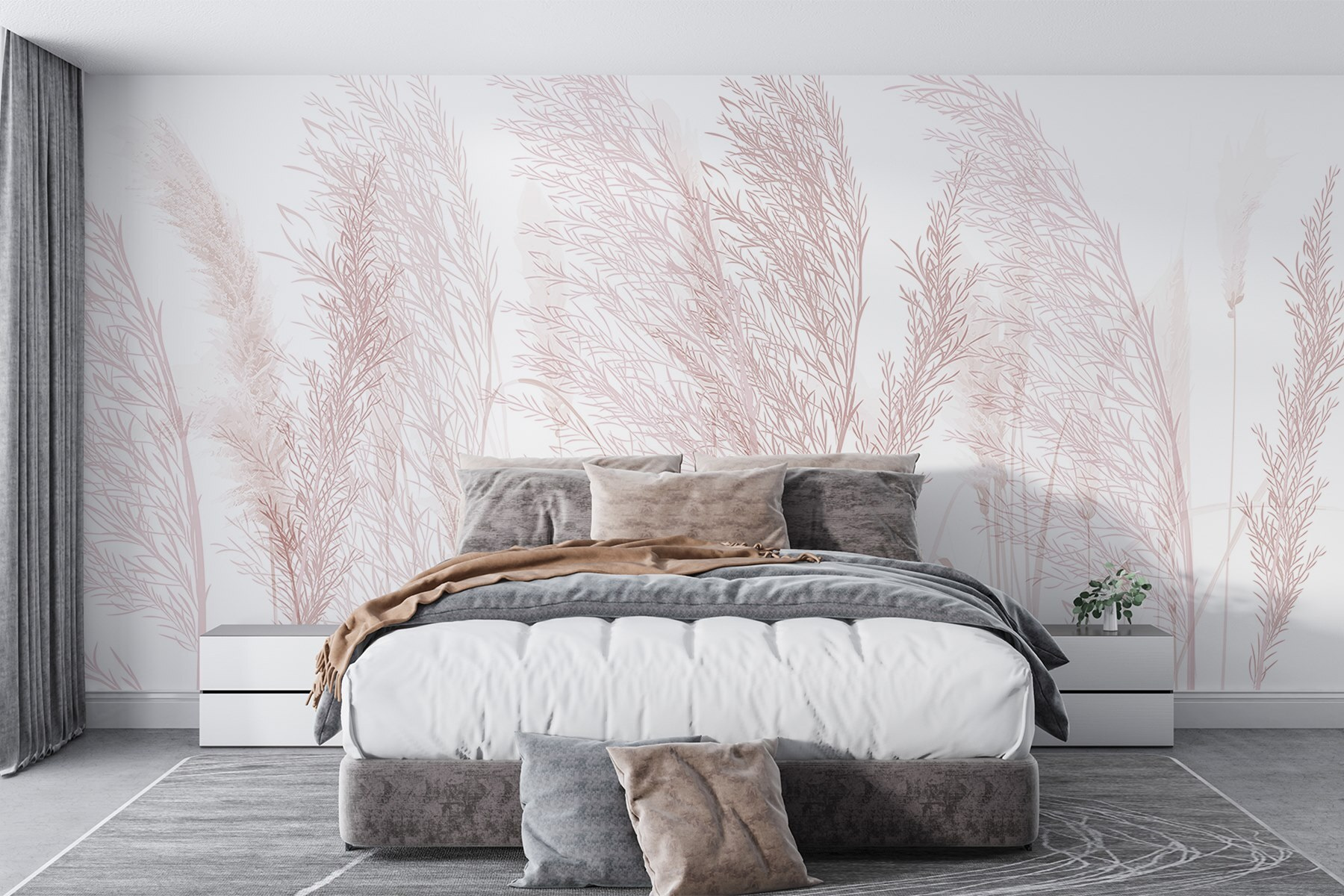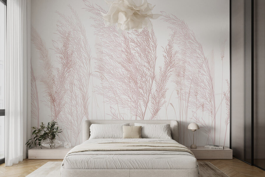 Stel je dit eens voor: een zacht briesje dat door een veld ruist, waar slingerende grassen en kleine roze bloemen verlegen naar buiten gluren. Deze muurschildering met haar subtiele schoonheid verandert elke kamer in een vredig, door de natuur geïnspireerd toevluchtsoord. Het is iets waardoor je even stilstaat, diep ademhaalt en misschien zelfs glimlacht, omdat je een beetje rust in de chaos voelt. Perfect voor iedereen die een beetje van het buitenleven in huis wil halen. Bovendien is het een heerlijke achtergrond voor dagdromen – kijk maar naar die bloemen die op de muur dansen!