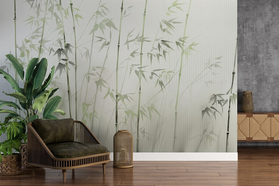 Verander je ruimte in een oase van rust met deze prachtige muurschildering van bamboestengels die dansen met zachte bladeren. Stel je voor dat je een kamer binnenloopt die aanvoelt als een serene Japanse tuin, waar stress gewoon lijkt weg te smelten. Het subtiele groen en de delicate vormen creëren een vredige sfeer, waardoor het perfect is voor een gezellige leeshoek of een rustgevende slaapkamer. Het is alsof je een stukje natuur in huis haalt – zonder het vuil! Elke blik geeft je een rustgevend gevoel en herinnert je eraan om even rustig aan te doen en de schoonheid om je heen te waarderen. Geloof ons, het is moeilijk om niet te glimlachen als je omringd bent door dit prachtige groen!