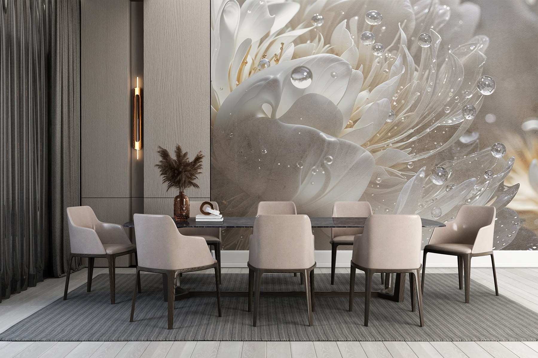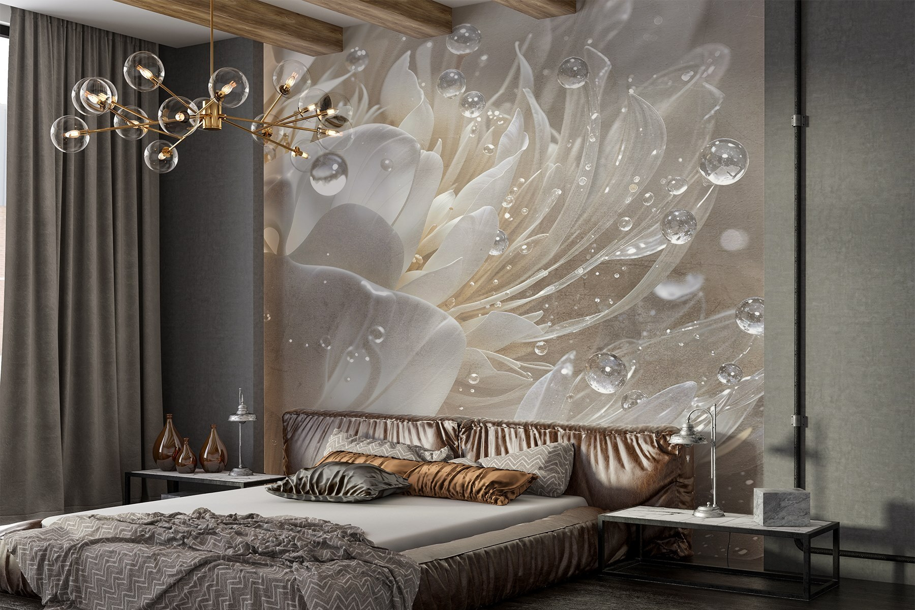 Fotobehang Delicate bloemblaadjes versierd met druppels (SKU: w08402)