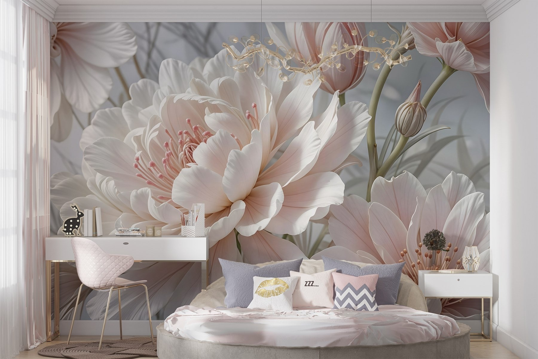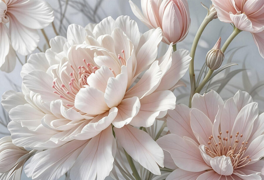 Tover elke kamer om in een dromerige oase met deze betoverende muurschildering, “Delicate Blooms in Soft Pastel Hues”. Stel je voor dat je wakker wordt met een uitbarsting van prachtige pioenrozen en tulpen, hun zachte bloemblaadjes fluisteren bijna zoete woordjes als het licht over hun rondingen danst. Het is alsof je een tuin in huis haalt – zonder gieter en vervelende insecten! De zachte pasteltinten creëren een kalme sfeer waardoor elke ruimte een beetje serener aanvoelt. Perfect voor een gezellig leeshoekje of een levendige woonkamer, deze muurschildering nodigt uit tot ontspanning en charme. Het is moeilijk om niet te glimlachen als je omringd bent door zulke schoonheid; het is als een warme knuffel voor je muren!