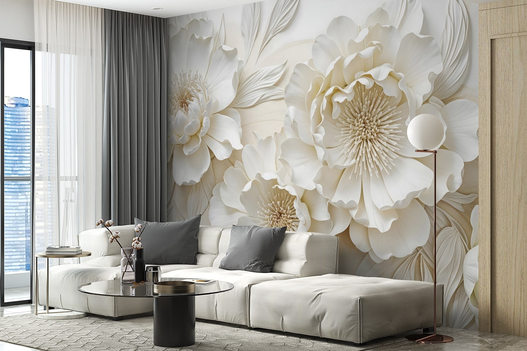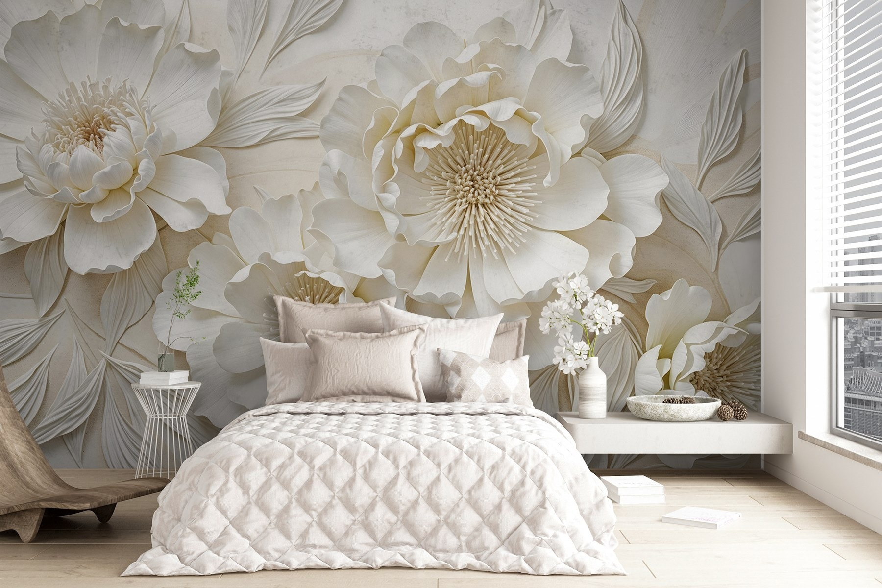 Fotobehang Ingewikkeld reliëfontwerp met bloemen