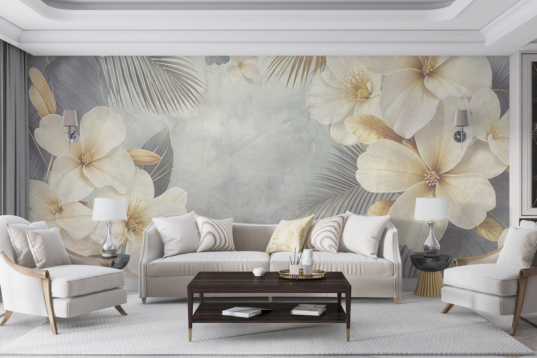 Transformeer je kamer met deze prachtige muurschilderingen van witte bloemen en bladeren. Stel je voor dat je een verfrissende tuin binnenstapt telkens als je de kamer binnenkomt. De zachte tinten en delicate details toveren een glimlach op ieders gezicht, net als een zacht lentebriesje. Het is perfect voor een gezellig leeshoekje of zelfs een levendige accentmuur in je woonkamer – voeg een comfortabele stoel en een dampende kop thee toe en je bent klaar. Plus, wie houdt er niet van een goede bloemenvibe? Je hebt het gevoel dat je omringd bent door de natuur, zelfs als je binnen zit. Het is bijna alsof je een geheime tuin hebt, zonder onkruid te wieden!