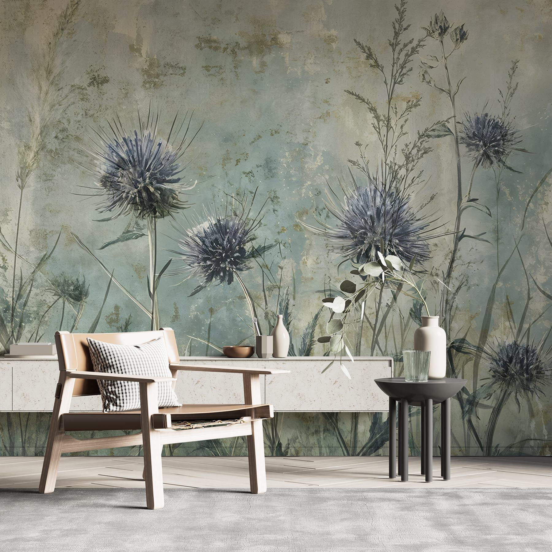 Verander elke ruimte in een serene ontsnapping met deze betoverende muurschildering van bloemen en planten. Stel je voor dat je wakker wordt met zacht blauw en groen, waar hoge grassen wuiven en levendige bloemen uitnodigen tot glimlachen. Perfect voor wie van de natuur houdt, het is alsof je een rustige tuin in de woonkamer hebt. Vrienden kunnen binnenlopen, even pauzeren en zeggen: “Wow, waar heb je dit vandaan?”. Het brengt gesprekken op gang en trekt mensen aan. De zachte kleuren brengen een gevoel van rust, waardoor het ideaal is voor gezellige avonden of rustige ochtenden. Wie wil er nou niet thuiskomen in een stukje natuur?