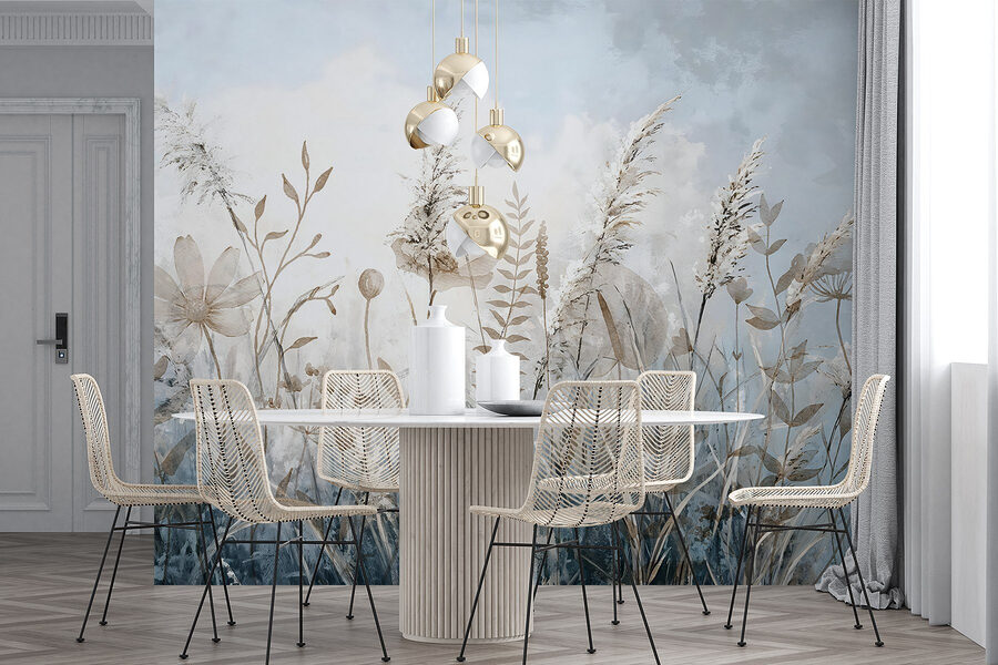 Verander elke kamer in een serene ontsnapping met deze betoverende muurschildering van bloemen en planten. Het brengt een zacht vleugje natuur binnenshuis, waardoor zelfs de grijsste dagen wat vrolijker aanvoelen. Stel je voor dat je ‘s ochtends aan je koffie nipt, omringd door zachte tinten en grillige vormen – over een oppepper gesproken! De delicate details nodigen je uit om even stil te staan en de schoonheid van de buitenlucht te waarderen. Deze muurschildering is perfect voor muren die wel wat liefde kunnen gebruiken en kan gesprekken op gang brengen of gewoon een gezellige achtergrond zijn. Wie wist dat de natuur omarmen zo moeiteloos kon zijn?
