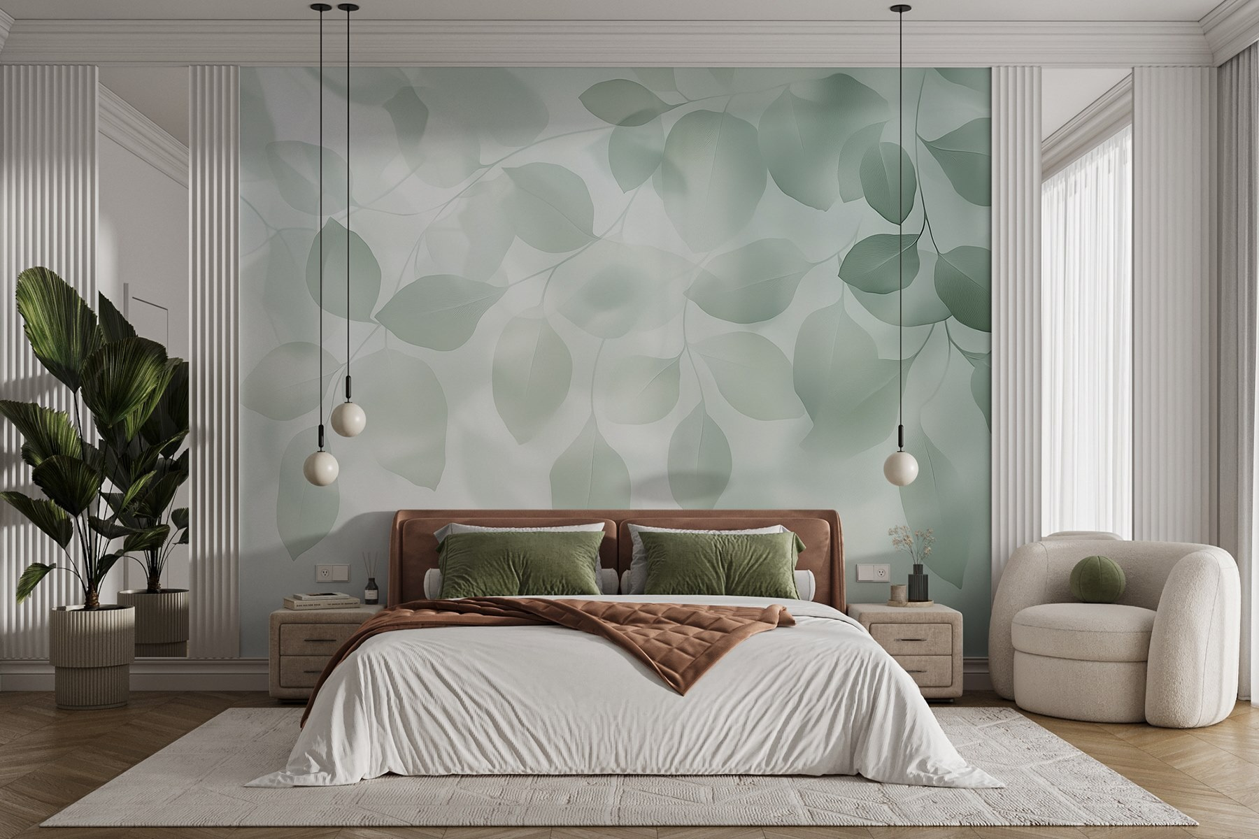Tover elke kamer om in een sereen toevluchtsoord met de muurschildering “Doorschijnende bladeren op zachte achtergrond”. Stel je voor dat je een ruimte binnenstapt waar zachte bladeren lui over een zachte, dromerige achtergrond zweven. Het is als gefluister van de natuur dat een vleugje rust en kalmte naar je muren brengt. Deze muurschildering is perfect voor gezellige woonkamers of rustige slaapkamers en nodigt uit tot buitenleven zonder de rommel van echte planten – water geven is niet nodig! Het is licht, luchtig en oh-zo-uitnodigend. Stel je voor dat je lekker wegkruipt met een boek of dat je een bijeenkomst organiseert, allemaal omringd door dit rustgevende groen. Wie zou dat niet willen?