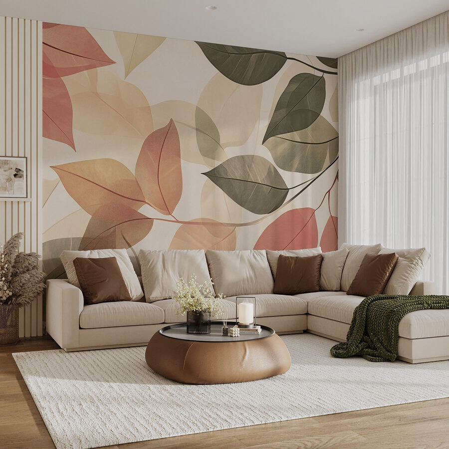 Verander een saaie muur in een rustgevende ontsnapping met deze muurschildering, “Zachte tinten van de schoonheid van de natuur”. Stel je voor: je stapt een kamer binnen en bam! Je wordt begroet door de zachte dans van bladeren in gedempt roze en groen, die de sereniteit van een boswandeling oproepen. Het is alsof je een stukje buiten naar binnen brengt zonder de vervelende insecten. Voel je stress wegsmelten als die zachte tinten zich om je heen wikkelen en een gezellige, uitnodigende sfeer creëren. Perfect voor een leeshoekje of een rustige slaapkamer, deze muurschildering decoreert niet alleen maar helpt je ook een beetje makkelijker adem te halen. Stel je eens voor dat je lekker wegkruipt met een kopje thee, omringd door de zachte aanraking van de natuur. Wie wist dat muren zo levendig konden aanvoelen?