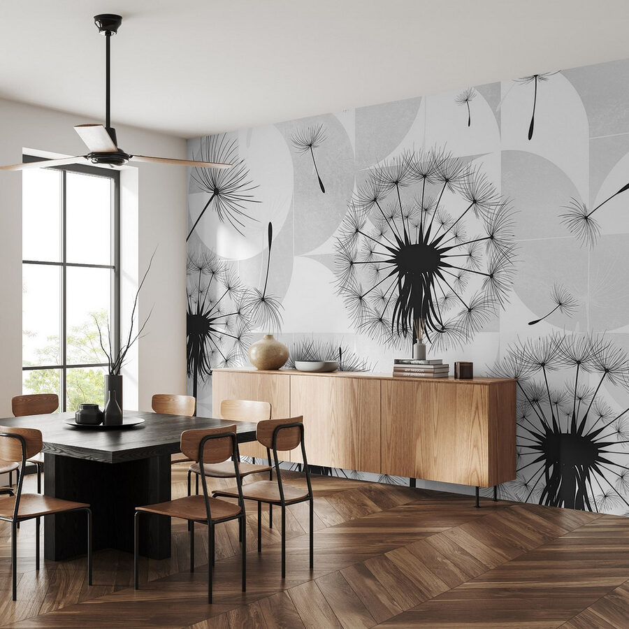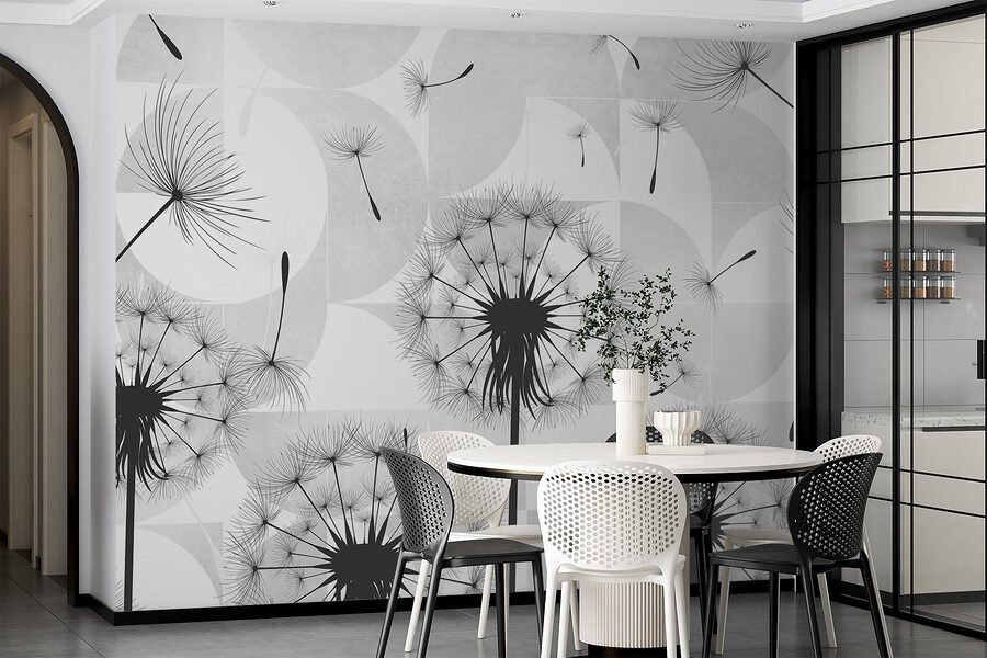 Verander een saaie muur in een dromerige ontsnapping met deze prachtige muurschildering van zwarte paardenbloemzaadjes die door de lucht dansen. Het is alsof je een stukje natuur naar binnen haalt! Stel je voor dat je ‘s ochtends aan je koffie nipt terwijl deze delicate zaadjes boven je zweven en je doen denken aan wensen en zonnige dagen. Deze muurschildering is niet zomaar een decorstuk; het vertelt een verhaal en nodigt uit tot een gevoel van rust en eigenzinnigheid in je ruimte. Het elegante contrast van zwart en wit creëert een moderne sfeer, waardoor het perfect is voor elke kamer. En wie weet? Misschien inspireert het wel tot een paar dagdromen!