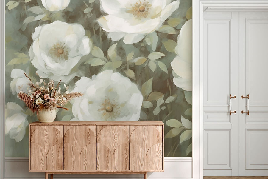 Verander elke kamer in een oase van rust met de “Fotobehang Painting of White Flowers”. Stel je voor dat je wakker wordt met deze zachte bloemen, hun delicate bloemblaadjes fluisteren bijna zoete woordjes naar je muren. Het is als een frisse wind op een warme lentedag, die uitnodigt tot een gevoel van rust en vreugde. Stel je een knusse leeshoek voor of een lichte keuken met deze muurschildering – het is niet zomaar decor; het voelt als een stukje natuur bij je thuis. Elke blik op die charmante bloemen kan een glimlach ontlokken en je eraan herinneren dat schoonheid vaak in de eenvoudigste dingen zit. En wie wil er nu niet omringd worden door prachtige bloemen? Deze muurschildering is perfect voor elke ruimte die een vleugje sereniteit nodig heeft en is zowel trendy als tijdloos, waardoor het een prachtige gespreksstarter is.
