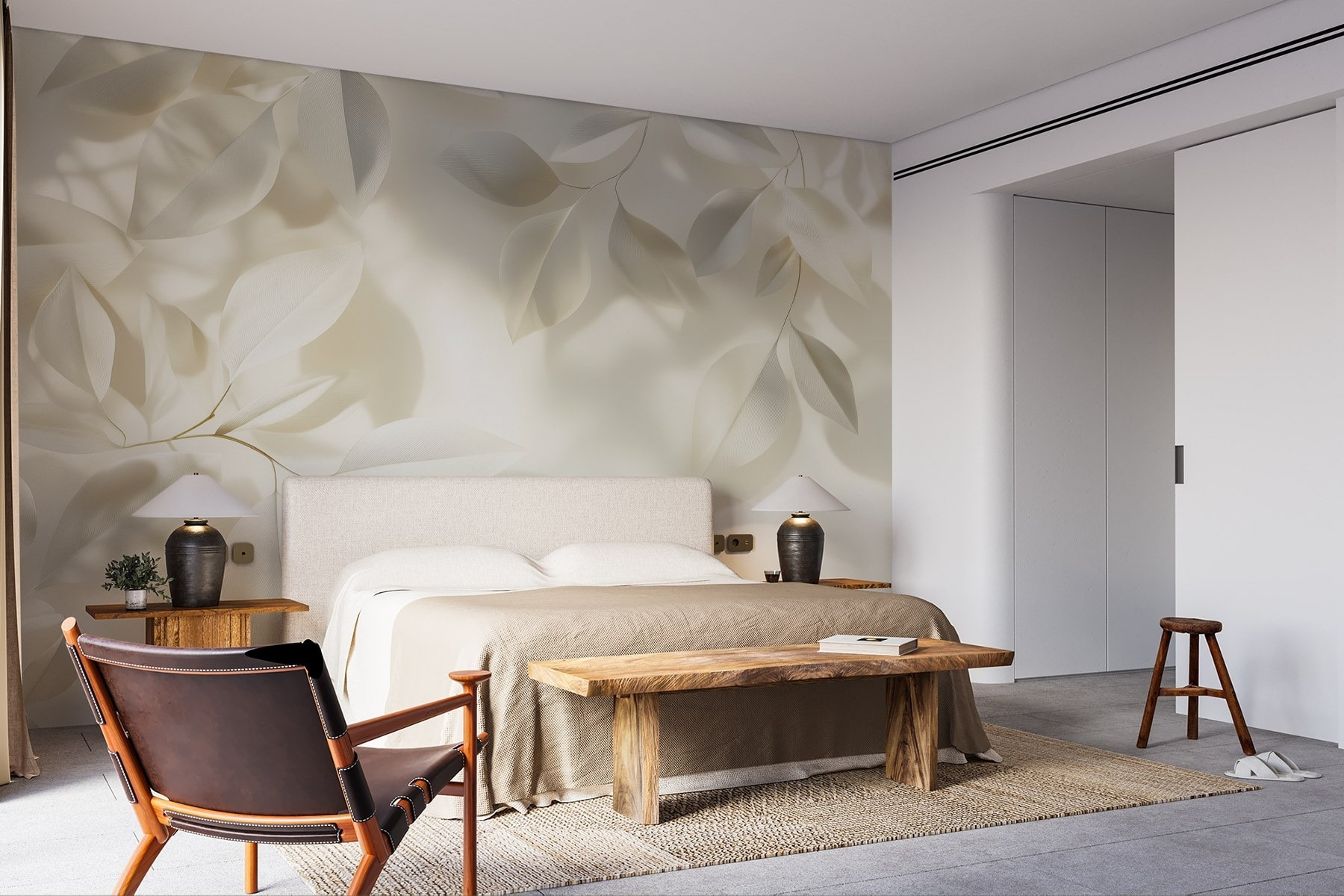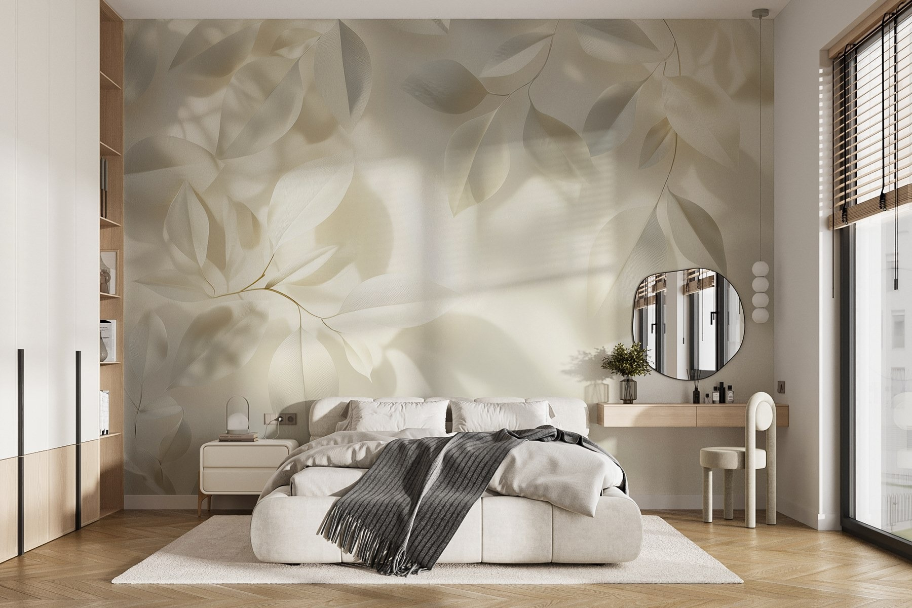 Transformeer elke ruimte met deze prachtige muurschildering, “Witte bladeren op een wit oppervlak”. Het is alsof je een zacht briesje binnenlaat en een verfrissend vleugje natuur in huis haalt. De zachte, elegante bladeren dansen over de muur en creëren een serene achtergrond waardoor je je meteen ontspannen voelt – denk aan gezellige ochtenden met je favoriete boek of een heerlijk theekransje. Bovendien is hij veelzijdig genoeg voor elke kamer, of het nu een chique woonkamer is of een rustgevende slaapkamer. Stel je de complimenten van vrienden eens voor – ze zullen denken dat je van je huis een stijlvol toevluchtsoord hebt gemaakt!