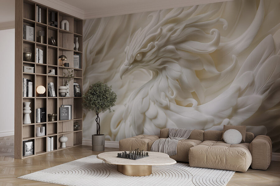 Transformeer je ruimte met de betoverende “Fotobehang White Bird Statue with Feathers”. Dit prachtige stuk brengt een zachte, serene sfeer die aanvoelt als een zacht briesje op een lentedag. Stel je voor: je zit aan de thee en de sierlijke details van de vogel spreken tot de verbeelding en nodigen je uit om even te genieten. De delicate textuur en het delicate wit creëren een sfeer die zowel rustgevend als verkwikkend is. Het is alsof je een stukje natuur aan je muur hebt hangen, dat bij elke blik rust en elegantie uitstraalt. Deze muurschildering decoreert niet alleen, maar inspireert ook. Of het nu in een gezellig leeshoekje is of in een levendige woonkamer, het zal zeker gesprekken opwekken en harten verwarmen. Creëer een klein toevluchtsoord – want wie houdt er nu niet van een nestje stijl in huis?