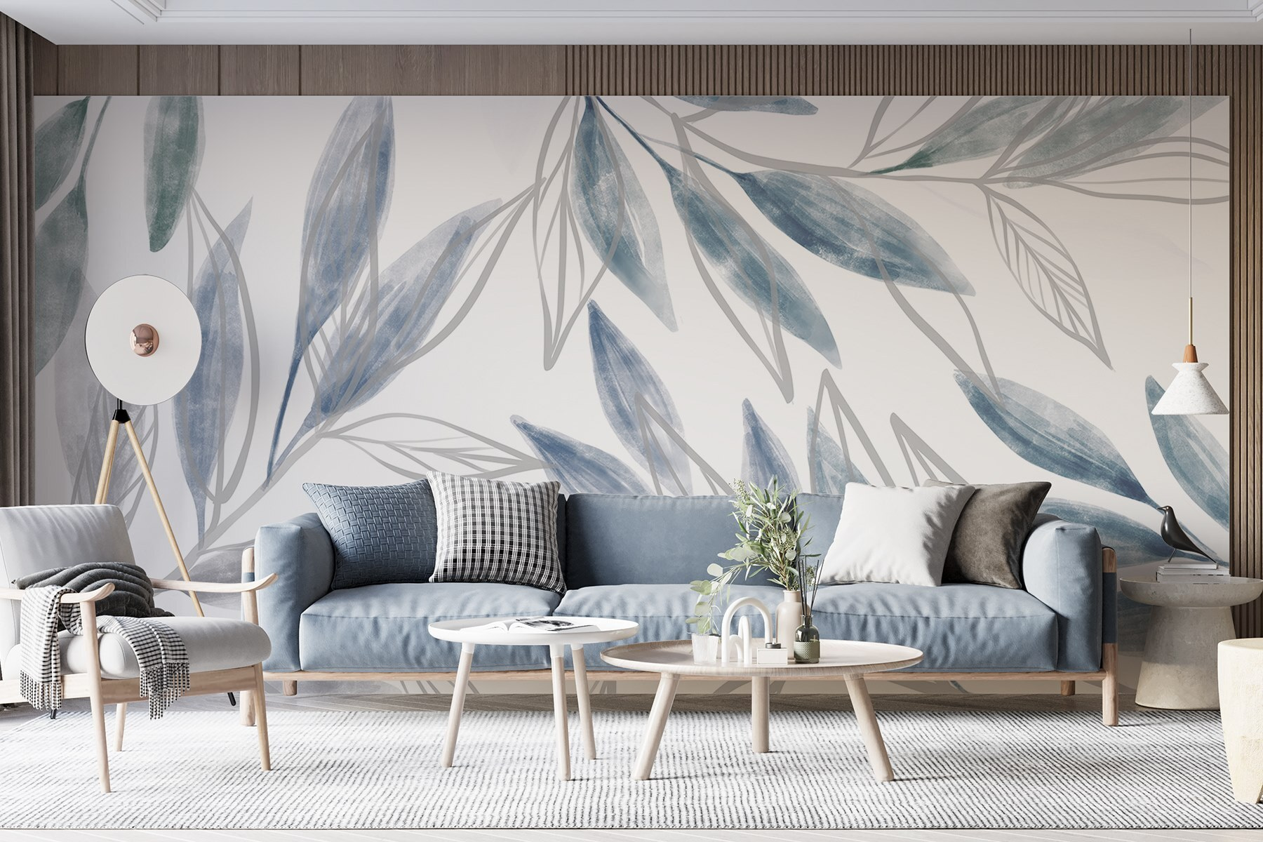 Tover je ruimte om in een sereen toevluchtsoord met de muurschildering “Natural Elegance in Soft Hues”. Stel je eens voor dat je wakker wordt met een zachte omhelzing van bladgroen en zacht blauw, alsof de natuur binnen is komen wandelen. Deze muurschildering versiert niet alleen een muur, maar zorgt voor een frisse wind in je huis en creëert een vredige sfeer die fluistert: “Hé, neem even de tijd om te ontspannen.