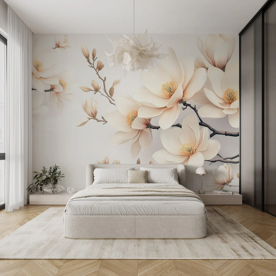Transform your space with the “Delicate Blossoms in Soft Hues” mural, where sophistication meets serenity. Picture stepping into a tranquil garden each day—those dreamy white flowers gracefully unfurl against a soft background, whispering calm vibes. Imagine curling up with a good book or sipping coffee, all while surrounded by nature’s beauty, minus the pollen! It’s not just decor; it’s like inviting spring right into your living room. Whether it’s a cozy nook or a lively dining area, these blossoms are here to elevate. Just a touch of elegance, and voilà! Your walls instantly feel like a breath of fresh air. Who knew a mural could bloom with such charm?