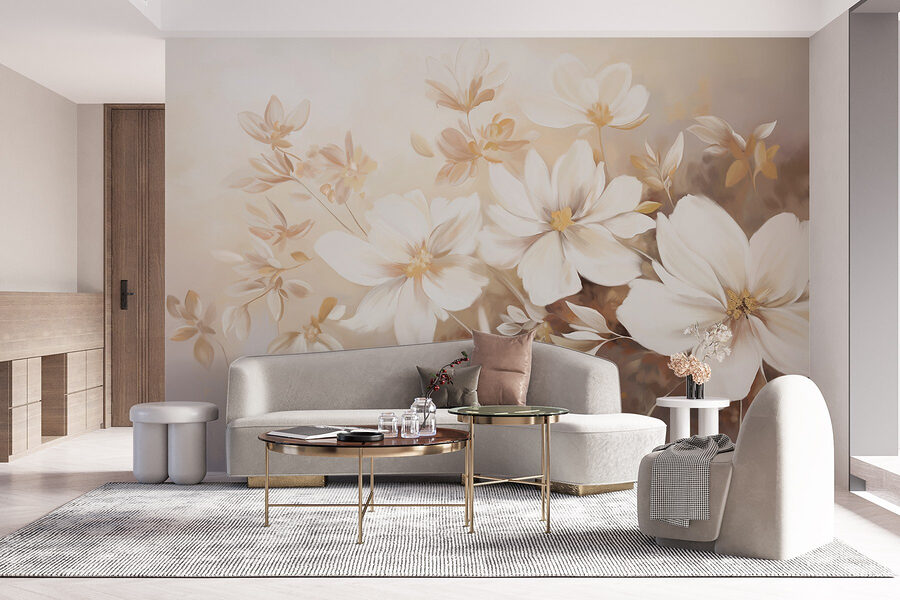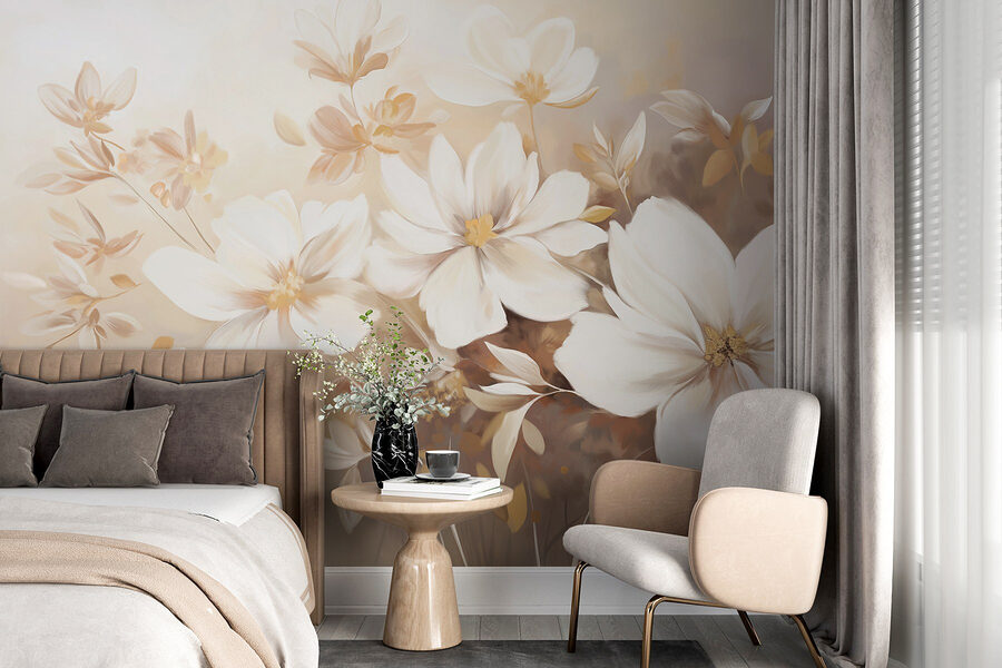 Verander uw ruimte in een serene tuin met deze betoverende muurschildering met delicate witte bloemen. Stel u voor dat u uw kamer binnenstapt en meteen een golf van rust over u heen voelt komen, als een zacht lentebriesje dat de geur van bloeiende bloemblaadjes met zich meedraagt. Dit kunstwerk straalt warmte en elegantie uit en past moeiteloos bij elk interieur. De zachte tinten en artistieke flair creëren een dromerige sfeer; het is als een knusse knuffel voor uw muren. Perfect voor die rustige middagen, het inspireert tot dagdromen en maakt elke ruimte net iets magischer. Bovendien, wie wil er nu geen instant bloemenoase?