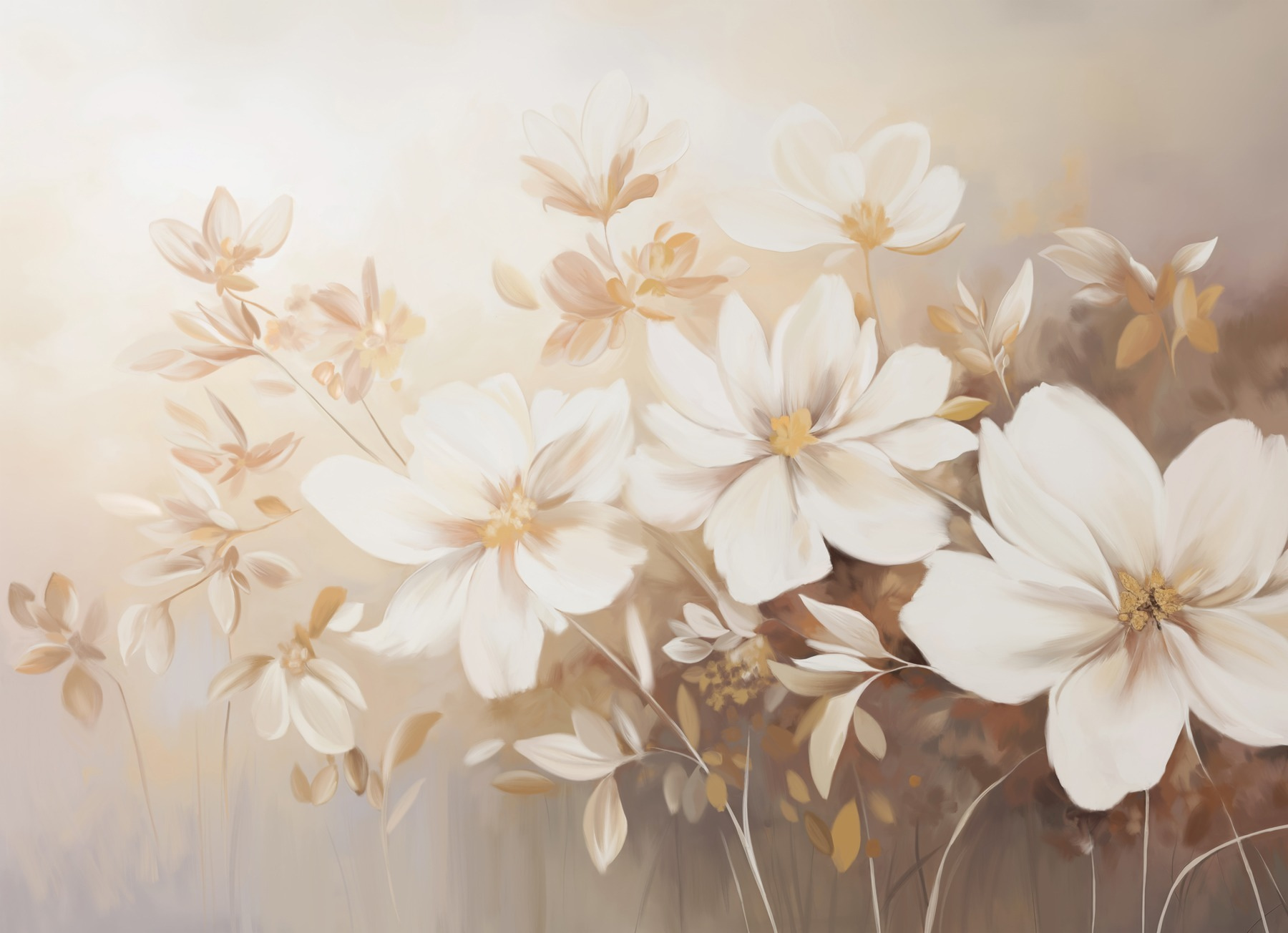 Verander uw ruimte in een serene tuin met deze betoverende muurschildering met delicate witte bloemen. Stel u voor dat u uw kamer binnenstapt en meteen een golf van rust over u heen voelt komen, als een zacht lentebriesje dat de geur van bloeiende bloemblaadjes met zich meedraagt. Dit kunstwerk straalt warmte en elegantie uit en past moeiteloos bij elk interieur. De zachte tinten en artistieke flair creëren een dromerige sfeer; het is als een knusse knuffel voor uw muren. Perfect voor die rustige middagen, het inspireert tot dagdromen en maakt elke ruimte net iets magischer. Bovendien, wie wil er nu geen instant bloemenoase?