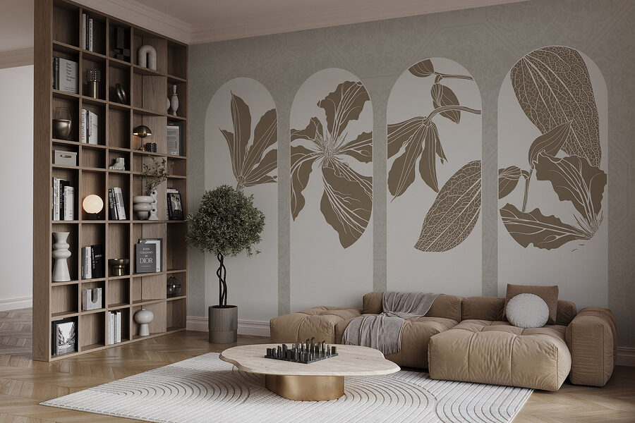 Transformeer je ruimte met deze prachtige muurschildering met een chique reeks witte en bruine bloemmotieven. Het is alsof je een serene tuin in huis haalt, zonder het vuil en de gieter. Stel je voor dat je je kamer binnenstapt en je voelt een golf van rust over je heen komen, terwijl deze prachtige bloemen je ogen trekken en je doen glimlachen. Deze ontwerpen zijn perfect voor die muur die zich een beetje eenzaam voelt en creëren een warme, uitnodigende sfeer die gewoon goed voelt. Of het nu een gezellig leeshoekje is of een levendige eethoek, deze muurschildering belooft je inrichting op de meest verrukkelijke manier te verbeteren. Wie wist dat muren zo levendig konden aanvoelen?