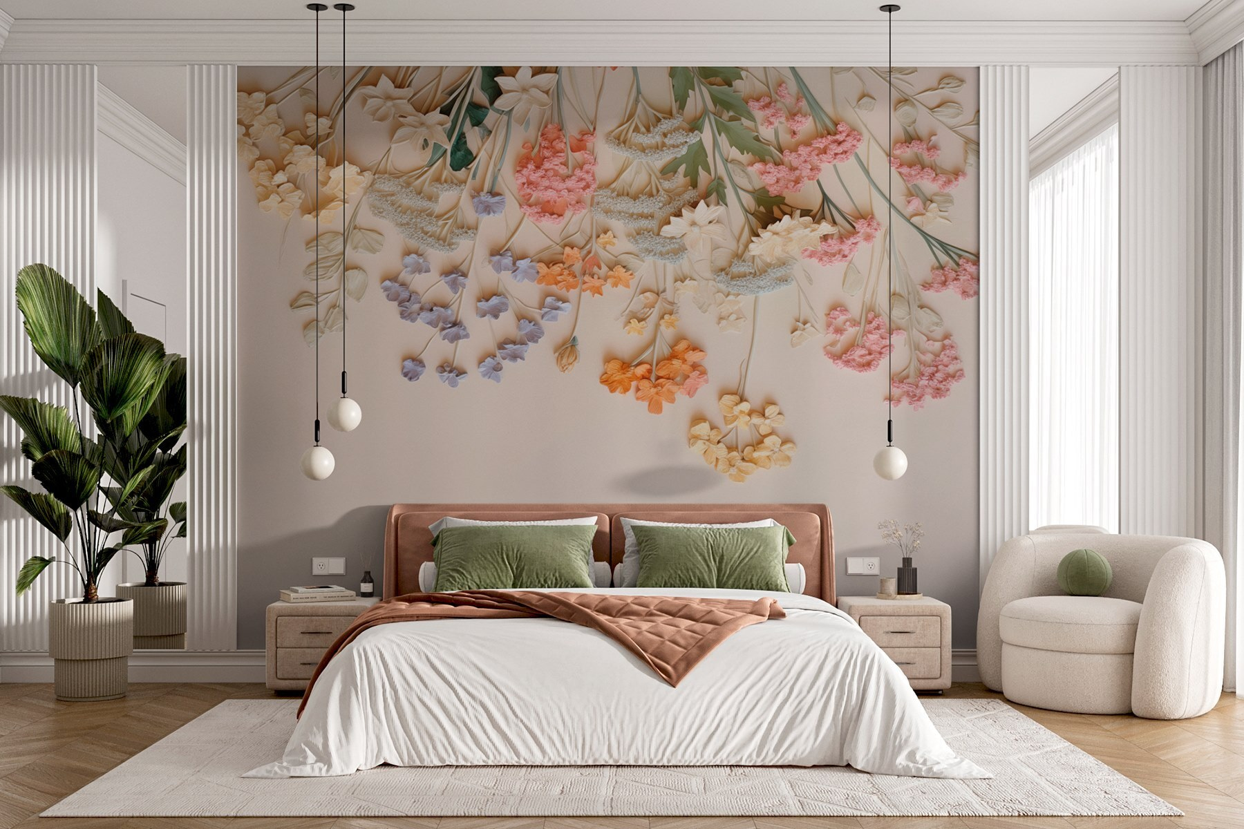 Breng een vleugje natuur in huis met deze charmante muurschildering met een prachtige groep bloemen die sierlijk over een zacht wit oppervlak groeien. Het is alsof je een tuin in je woonkamer hebt – zonder de gieter en de vervelende bijen! De zachte kleuren fleuren elke ruimte direct op en nodigen uit tot rust en vrolijkheid. Stel je voor dat je thee drinkt met vrienden, omringd door deze prachtige bloemenpracht die aanzet tot gesprekken en glimlachen. Perfect voor elke kamer en een makkelijke manier om een vleugje persoonlijkheid toe te voegen. Laat je muren een verhaal vertellen van warmte en creativiteit!