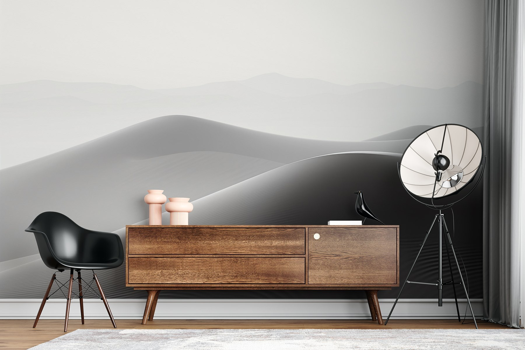 Stel je voor: thee drinken terwijl je naar de eindeloze horizon staart. De muurschildering decoreert niet alleen, maar wakkert ook de reislust aan en nodigt uit tot dagdromen. Wil je een ruimte die rust uitstraalt? Deze is een topper. Met zijn ingetogen charme past hij naadloos in elke interieurstijl, van boho tot modern. Een stukje natuur, zonder het zand in je schoenen!