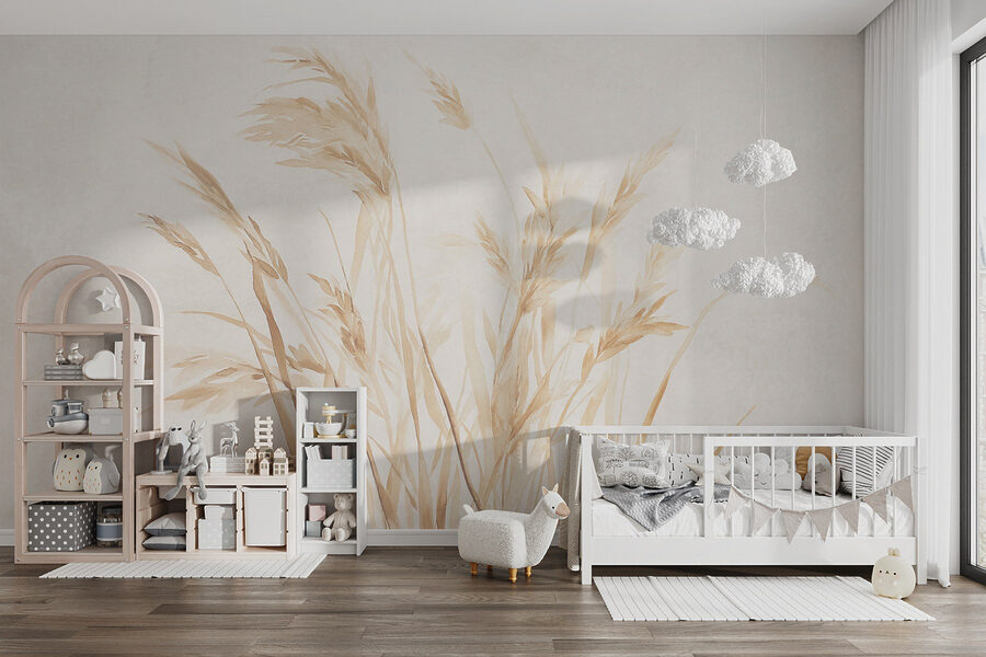 Transformeer elke kamer met deze prachtige muurschildering, Soft Grasses Sway in Gentle Breeze. Stel je voor: je zit in je woonkamer, nippend aan je koffie terwijl de rust van de natuur je overspoelt. De delicate grassen, geschilderd in rustgevende tinten, lijken bijna te bewegen met een zachte wind en nodigen warmte en sereniteit uit in je kamer. Het is alsof je buiten naar binnen haalt zonder de insecten. Vrienden zullen binnenkomen, een dubbele blik werpen en plotseling is je huis het knusse toevluchtsoord waar iedereen wil chillen. Deze muurschildering is perfect om een rustig hoekje te creëren of een gang op te fleuren en is een knipoog naar de schoonheid van de natuur.