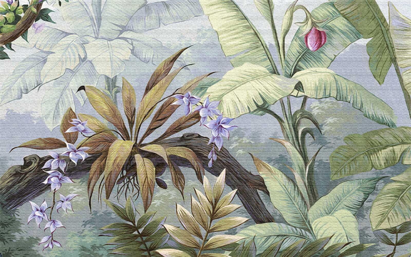 Transformeer elke ruimte met deze prachtige muurschildering met weelderig tropisch gebladerte en levendige bloemen. Stel je voor dat je een regenwoud binnenstapt, waar de kleuren zo levendig zijn dat ze bijna zingen. Elk blad en elke bloem is als een minivakantie voor je muren en roept een gevoel van rust en avontuur op. Het voelt alsof de natuur je omarmt, zelfs als je gewoon koffie drinkt in je woonkamer. Perfect voor wie wil dat zijn interieur een verhaal vertelt of een gesprek op gang brengt. Bovendien is het een makkelijke manier om een vleugje persoonlijkheid toe te voegen zonder te overdrijven – je hoeft niet te worstelen met potplanten! Deze muurschildering is als een verademing, die de buitenlucht naar binnen haalt, en wie wil dat nou niet?