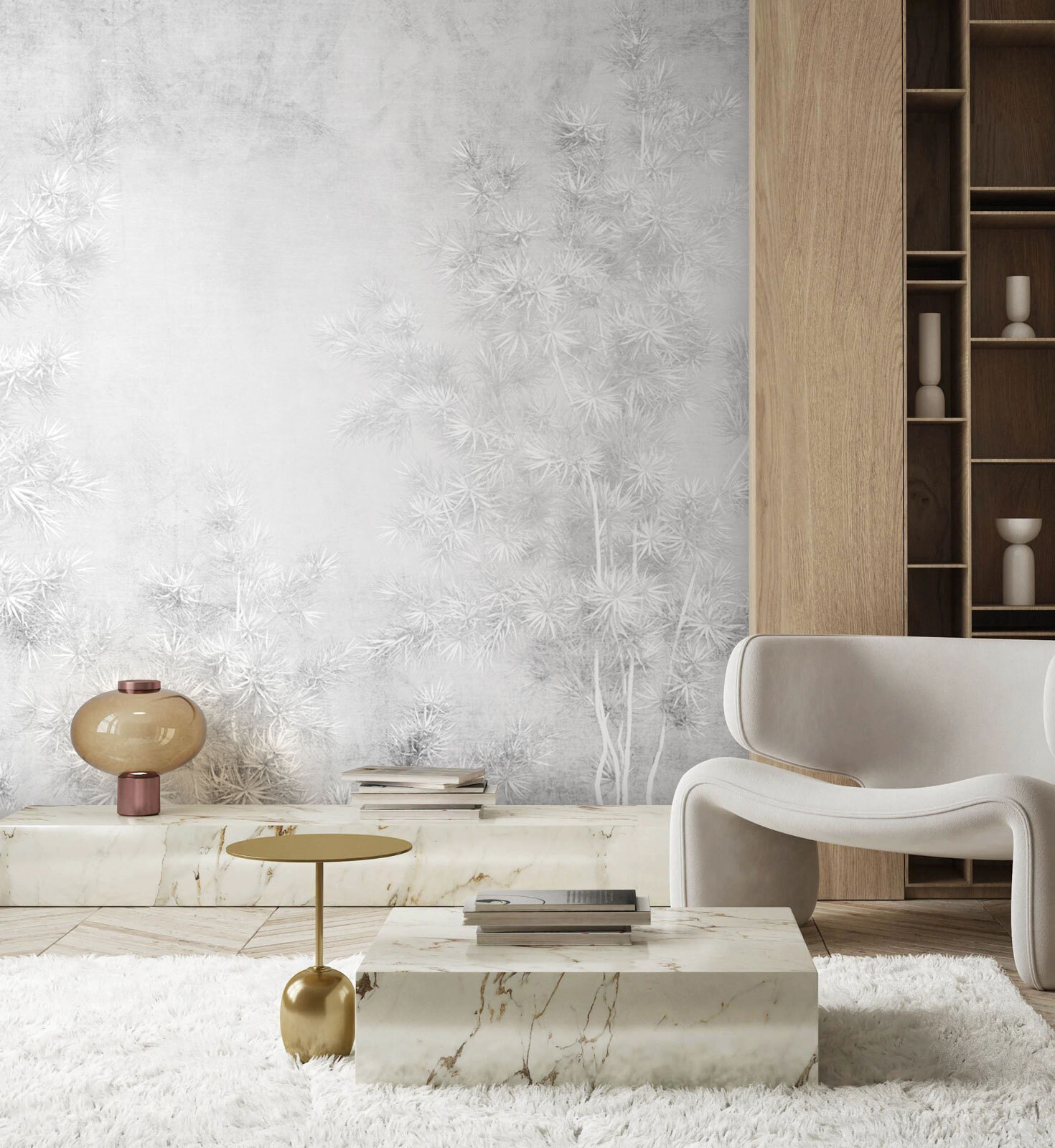 Verander elke kamer in je persoonlijke oase met deze prachtige muurschildering met zachte bomen tegen een serene witte achtergrond. Het voelt als een frisse wind, vind je niet? Stel je voor dat je wakker wordt met dit vredige tafereel – je hoeft niet naar buiten voor de omhelzing van de natuur. Gewoon heerlijke, kalmerende sferen. Of het nu in de woonkamer is of in een gezellig leeshoekje, deze muurschildering voegt een vleugje elegantie toe zonder om aandacht te schreeuwen. Het is als een fluistering uit het bos, die je uitnodigt om achterover te leunen en de rust op te snuiven. Perfect voor degenen die hunkeren naar een ontsnapping zonder het huis te verlaten.