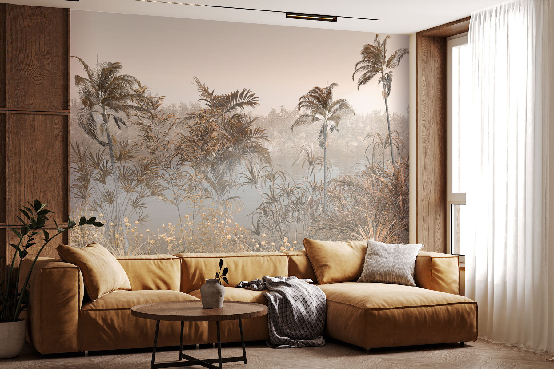 Stel je voor dat je wordt meegevoerd naar een serene oase aan het water telkens als je de kamer binnenloopt. Dat is precies wat je krijgt met de “Muurschilderingen Palmboom naast een waterlichaam”. Het is alsof je kokoswater drinkt met een beetje stille contemplatie. Deze muurschildering is perfect om Moeder Natuur in huis te halen en heeft alles te maken met kalmerende sferen: zacht wiegende palmbomen, een watermassa die de lucht weerspiegelt en een vredige omgeving die uitnodigt tot dagdromen. Het is de perfecte combinatie van een op de natuur geïnspireerde inrichting en een kleine ontsnapping voor de zintuigen. Stel je voor dat je een ruimte binnenstapt waar je je altijd luchtig en licht voelt, zelfs op stressvolle dagen. En hé, als je je ogen goed dichtknijpt, hoor je misschien het gefluister van palmbladeren en voel je een koel briesje.