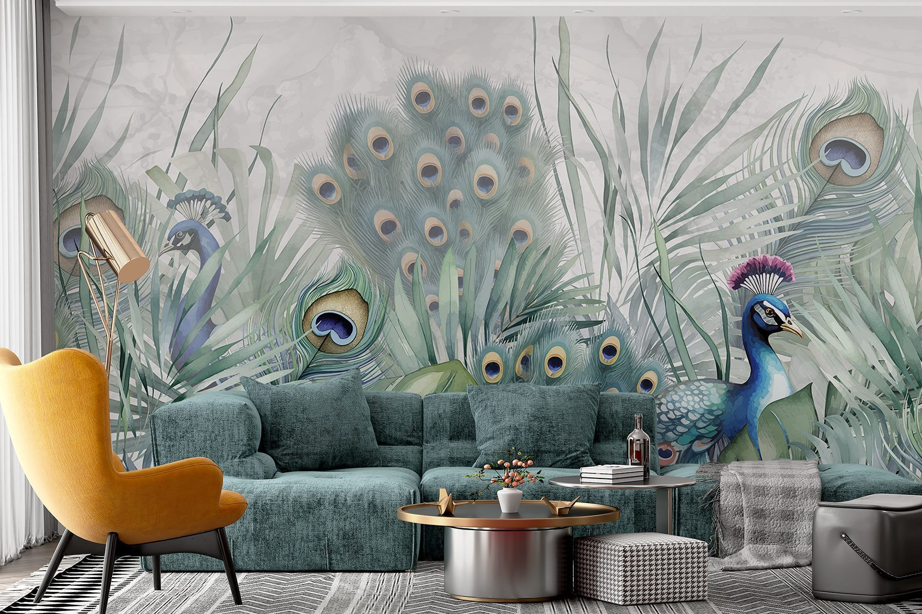 Stel je voor dat je een kamer binnenstapt waar de levendige veren van een pauw en het weelderige groen je elke dag begroeten – onmiddellijke oppepper, toch? Deze muurschildering “Pauwen en planten” laat elke muur tot leven komen en nodigt uit tot een gevoel van rust en kleur. Perfect voor een coole inrichting, het is net een kunstwerk van de natuur zelf. Het zou zelfs kunnen dat je tegen de pauwen gaat praten – dat komt door de boeiende details! Of het nu voor je woonkamer of een gezellige leeshoek is, dit stuk voegt een vleugje elegantie en eigenzinnigheid toe. Ga je gang, maak van je muur een meesterwerk!