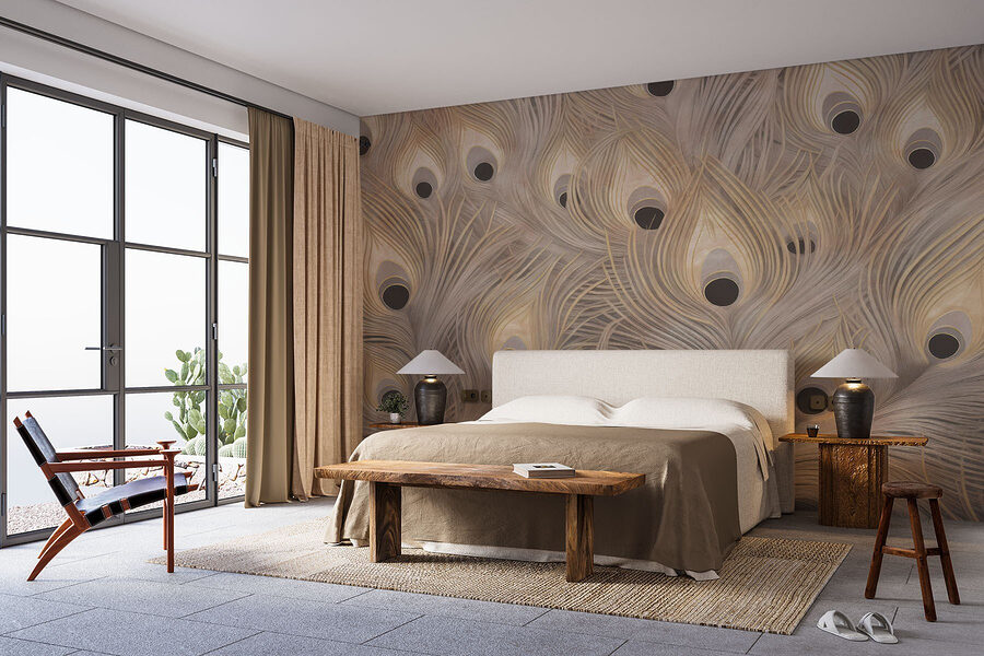 Transformeer elke ruimte met de betoverende “Wall Murals Graceful Patterns in Natural Harmony”. Stel je voor dat je een kamer binnenloopt die gekust wordt door de elegantie van pauwenveren, waarvan de zachte, vloeiende lijnen je in een gezellige omhelzing hullen. Het is net een uitnodigend tropisch paradijs, maar dan zonder de zonnebrand, toch? Stel je voor dat je ‘s ochtends van je koffie nipt met deze muurschildering op de achtergrond – wat een geweldige manier om de dag te beginnen! De rustgevende kleuren gaan moeiteloos in elkaar over en creëren een serene sfeer die zelfs de meest hectische dagen zal kalmeren. Of het nu in de woonkamer, slaapkamer of die vreemd lege gang is, het zal zeker de aandacht trekken en gesprekken op gang brengen. Perfect voor iedereen die kunst waardeert, maar de voorkeur geeft aan een vleugje natuur met een snufje eigenzinnigheid. Wie had gedacht dat wanddecoratie zo opbeurend kon zijn?