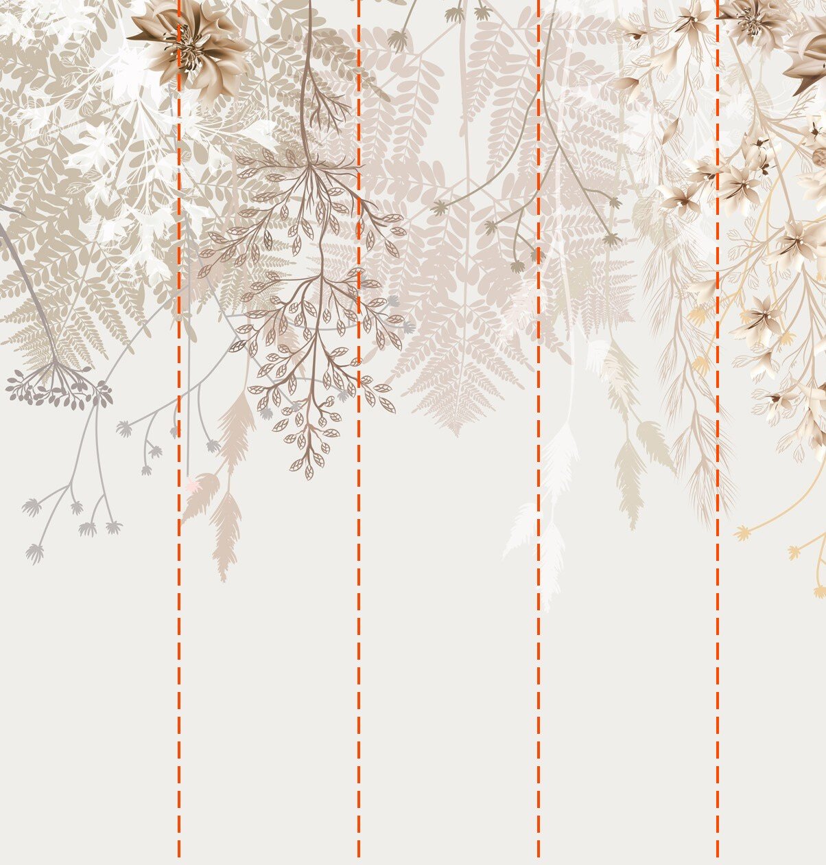Fotobehang Elegante bladeren en bloemen die naar beneden vallen