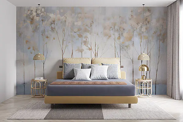 Kies rustiek fotobehang berken met zachte mist of hd fotobehang berken met diffuse lichtval. Dat zorgt voor een kalme sfeer en diepe ontspanning. Houd textiel en verlichting warm en gedempt.