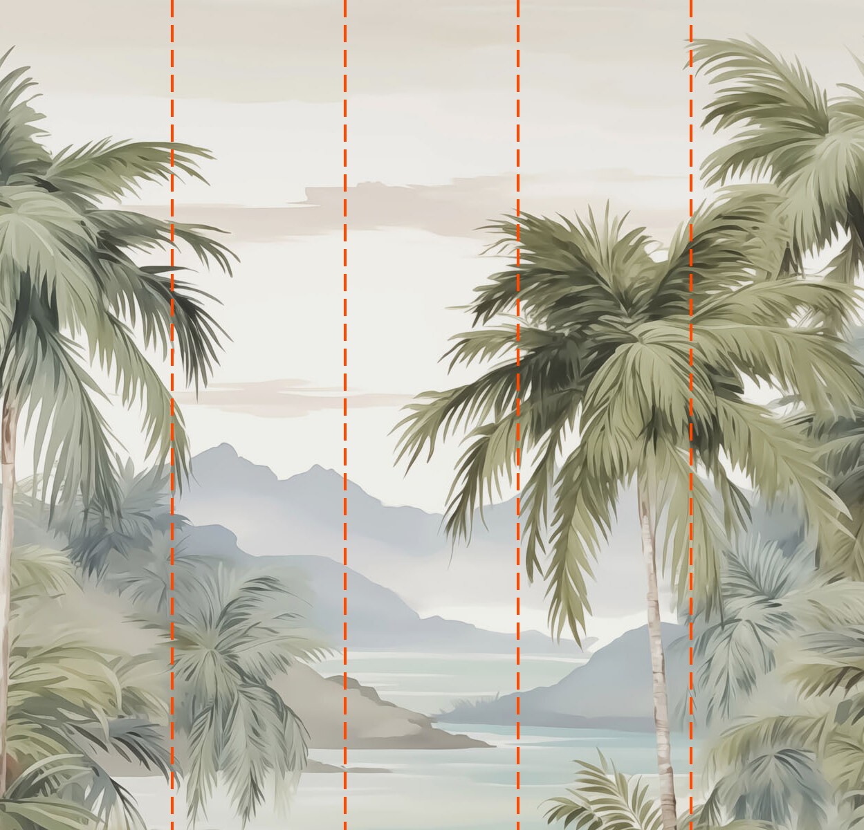 Fotobehang Palmbomen en bergen op de achtergrond