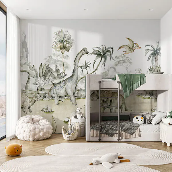 Realistisch dinosaurus fotobehang werkt goed voor kinderen die detail en “echte” jurassic fotobehang scènes waarderen. Cartoon dinosaurus fotobehang voelt zachter en past beter bij peuters. Denk aan de sfeer: avontuurlijk versus knus.